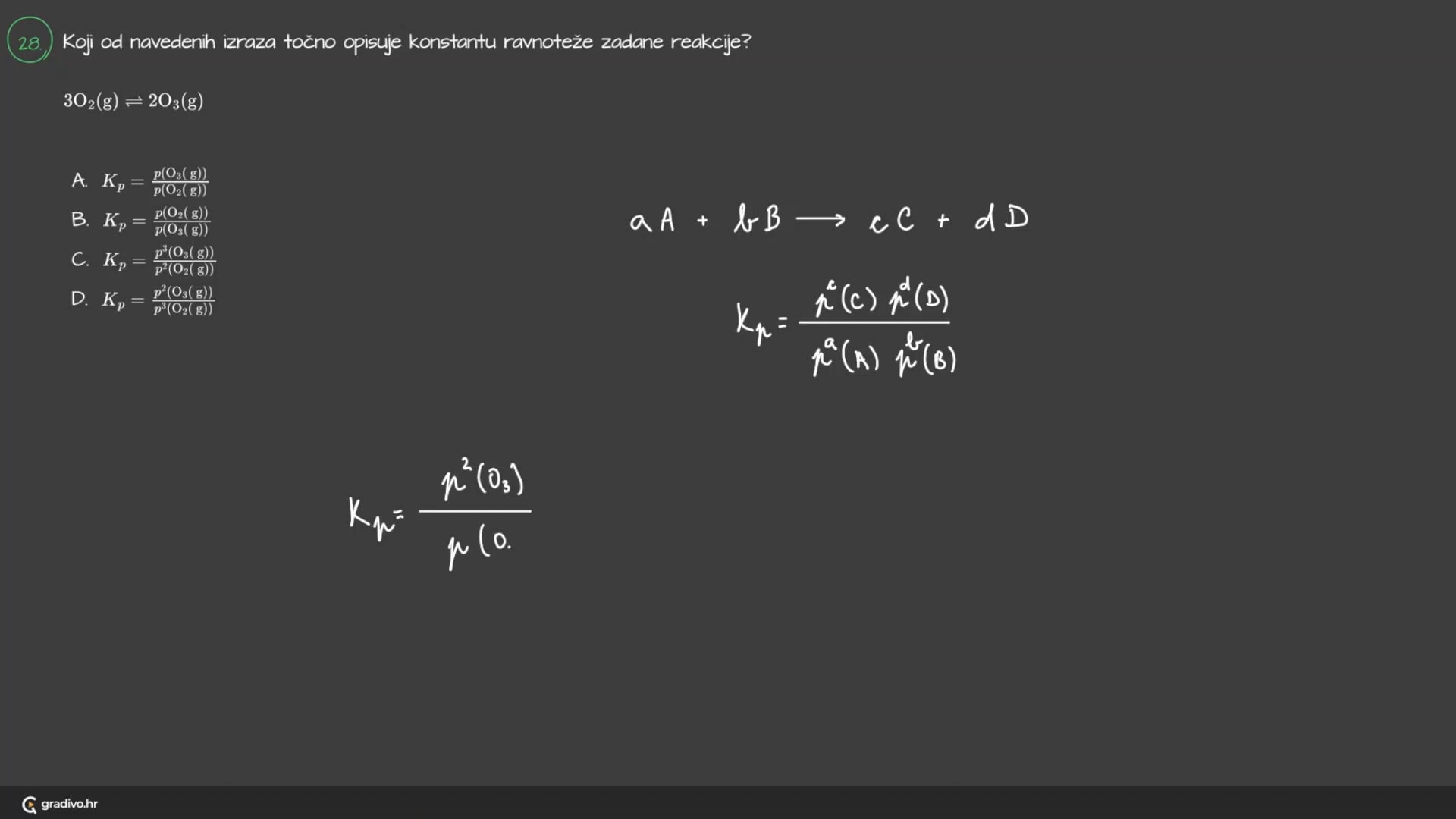 Za reakciju aA + bB ⇌ cC + dD, koncentracijska konstanta ravnoteže glasi: