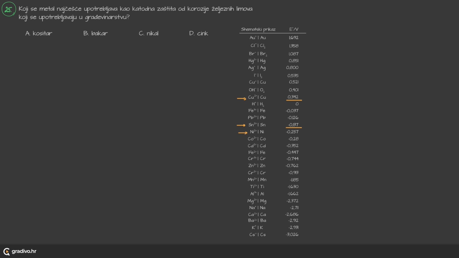 - nastali elektroni koriste se za redukciju kositra(II) u elementarni kositar,