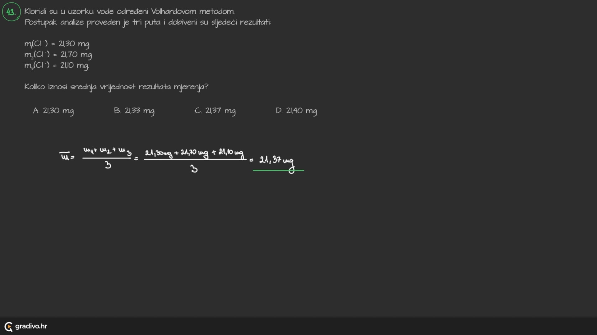 Kod velikog broja mjerenja, rezultat se najčešće izražava kao jedna vrijednost. Potrebno je odrediti vrijednost mjerenja koja najbolje opisuje dobivene rezultate mjerenja, a to se često izražava kao srednja vrijednost (aritmetička sredina) svih mjerenja.