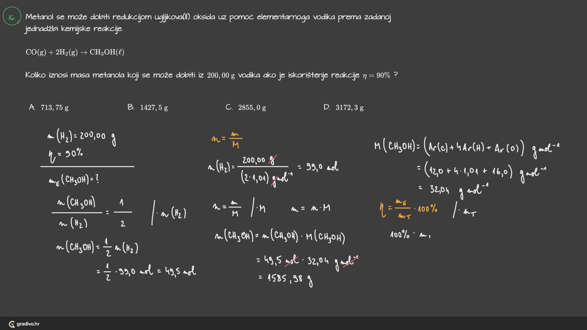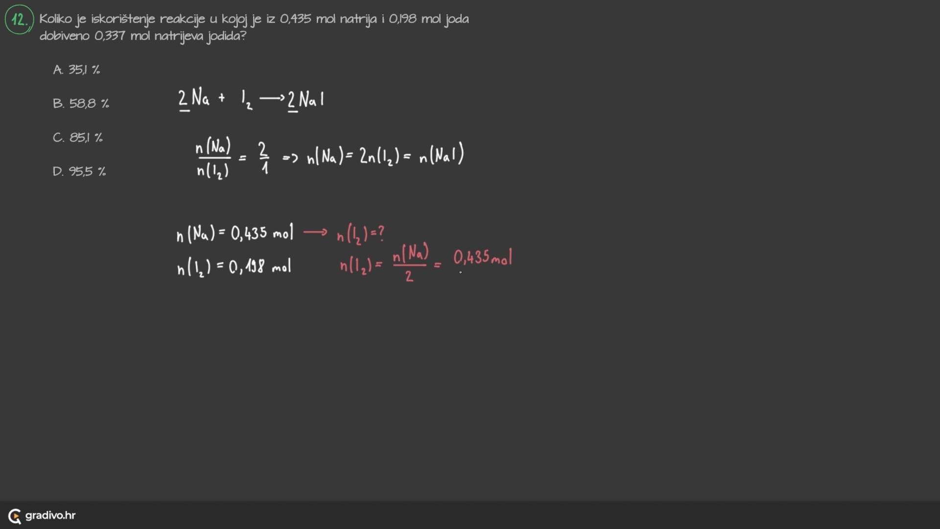 Također, zadano je da su početne množine reaktanata 1 mol.