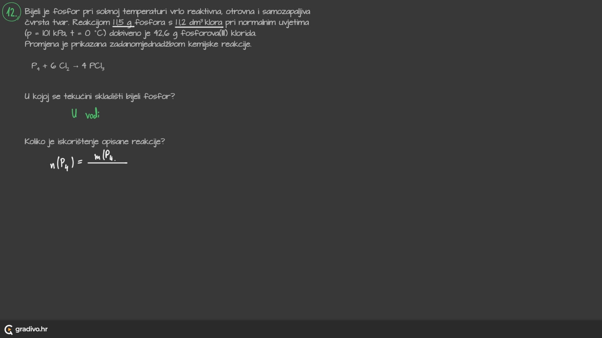 Da bismo odredili koji je reaktant mjerodavan, izračunat ćemo doseg reakcije preko svakog reaktanta. Onaj reaktant,