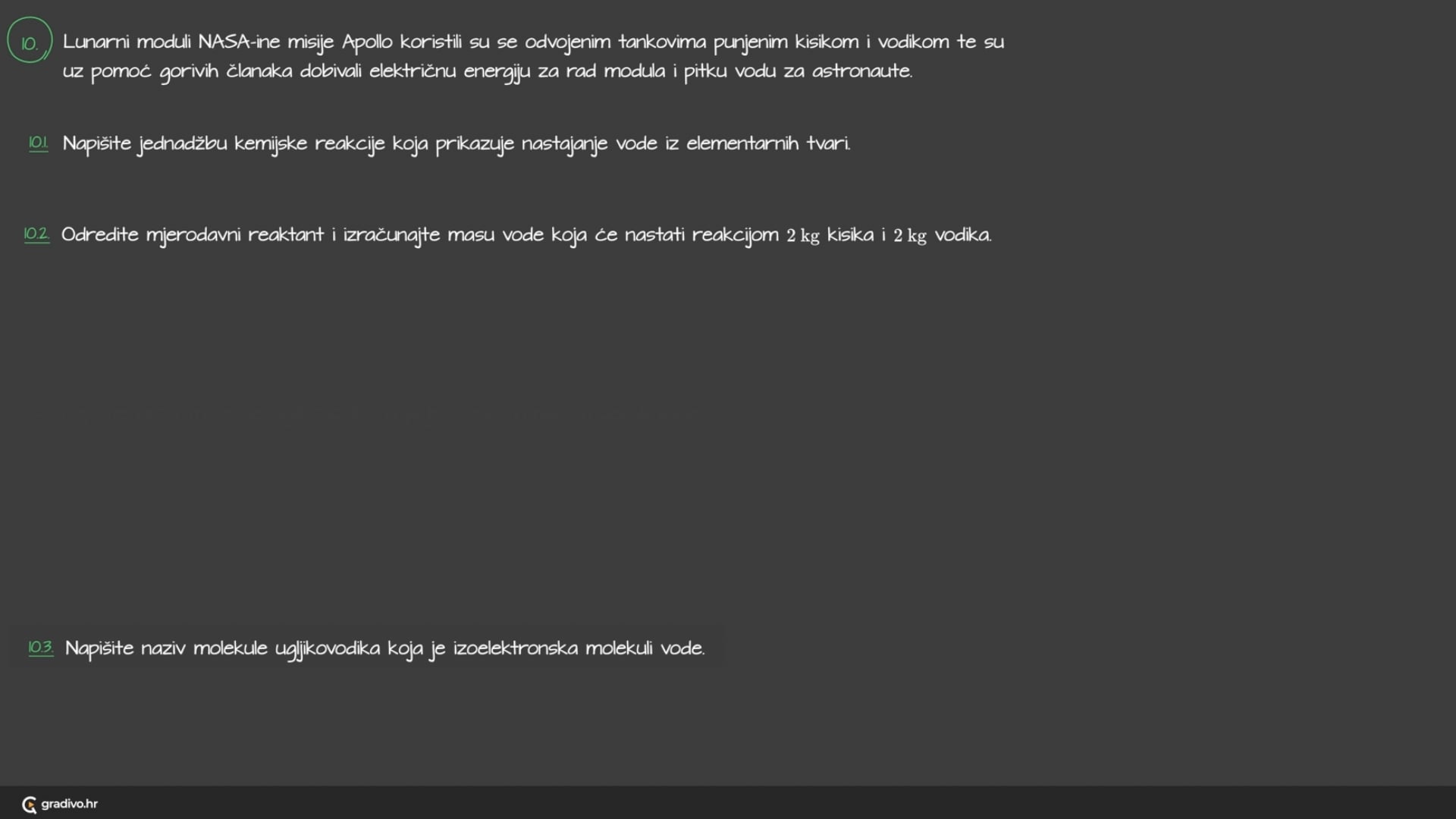Jednadžba kemijske reakcije koja opisuje zadanu reakciju glasi,