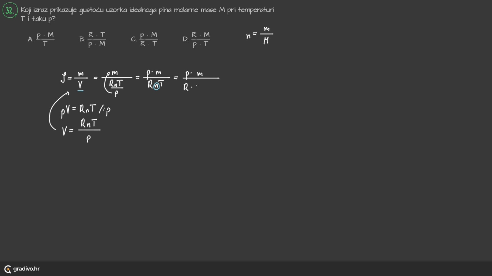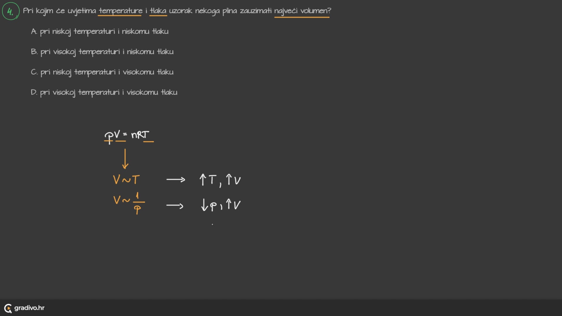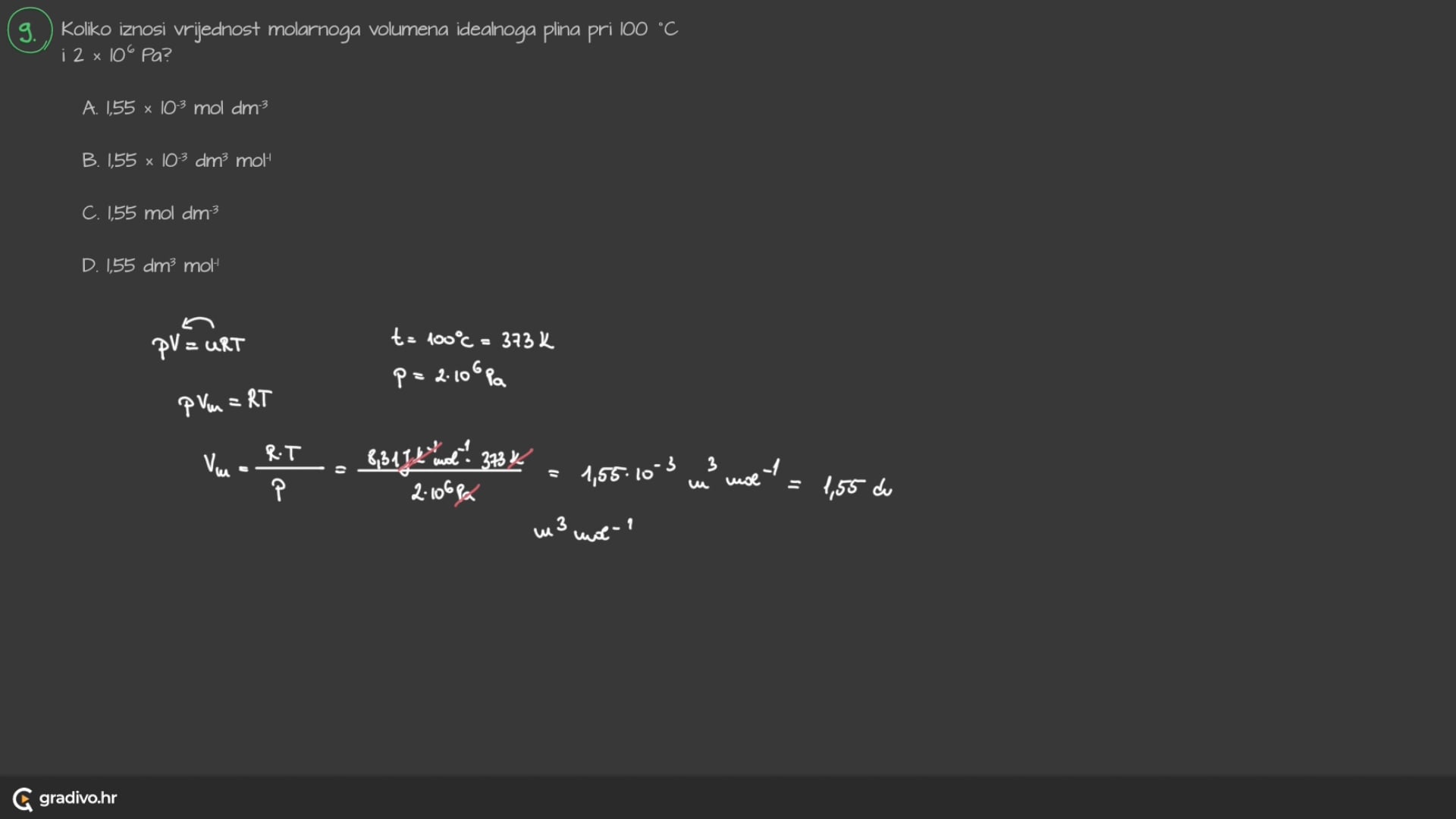 Poznato vam je da jedan mol plina pri normalnim uvjetima ima volumen od 22,4 dm3. Ako uvjeti nisu normalni, volumen plina računa se prema