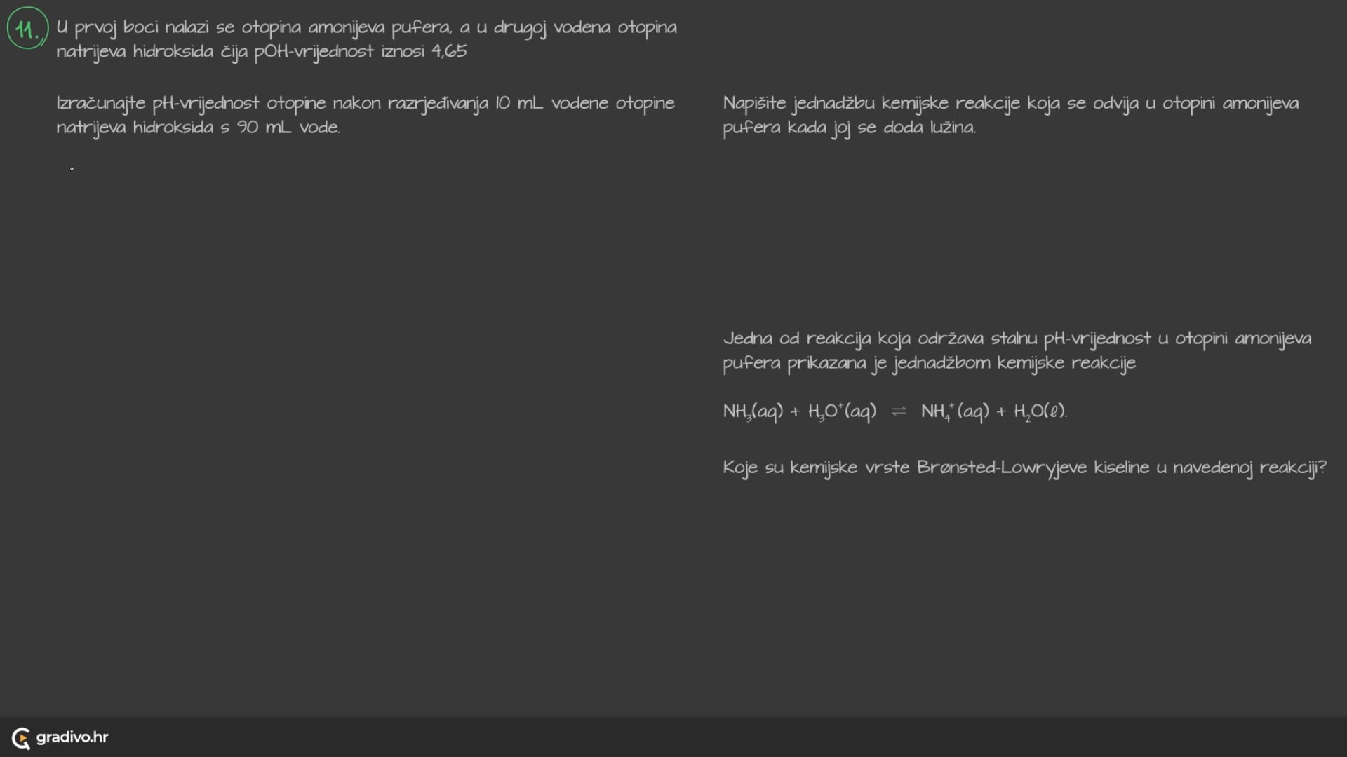 Pa će tako na početku koncentracija NH4+ iona biti jednaka početnoj koncentraciji soli cs. Tijekom reakcije, nastajat će još amonijevih iona iz amonijeve lužine. Nastat će ih onoliko koliko nastaje OH- iona pa će [NH4+] iznositi cs + [OH-].