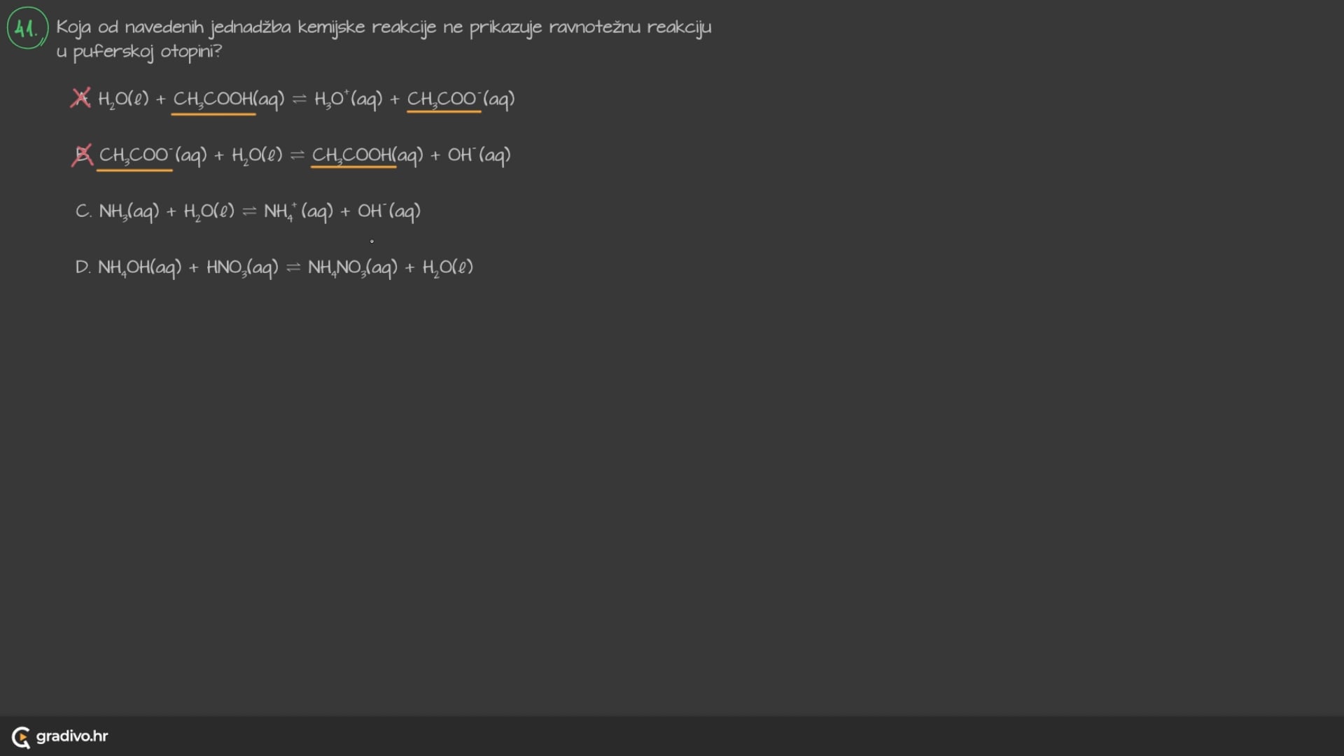 Na početku će koncentracija NH4OH odgovarati početnoj koncentraciji baze cb. Tijekom reakcije, baza će disocirati na ione, NH4+ i OH- . Smanjit će se onoliko koliko nastaje OH- iona pa će [NH4OH] iznositi cb - [OH-].