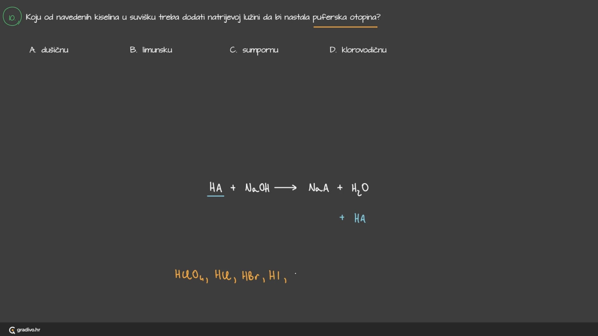 Ukoliko u kiseli pufer dodamo kiselinu, kiselina će reagirati sa soli, a ukoliko u kiseli pufer dodamo lužinu, lužina će reagirati sa slabom kiselinom.