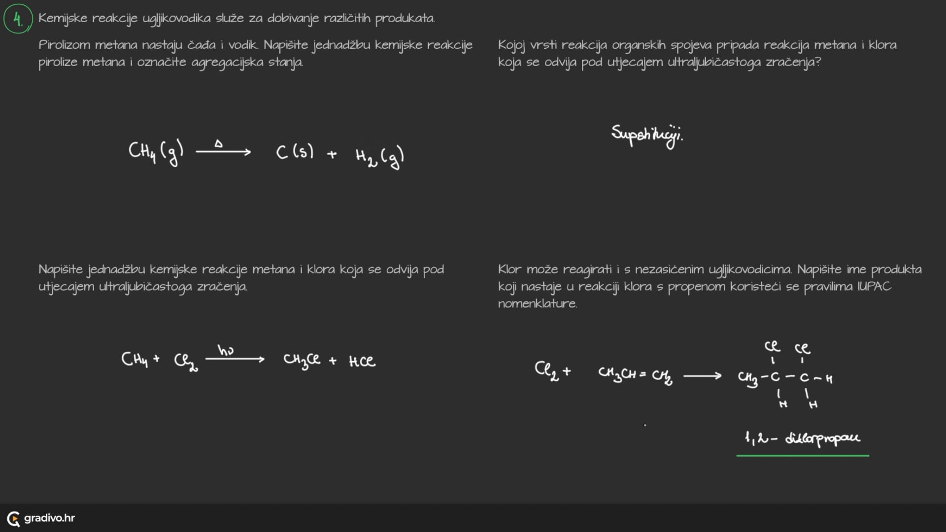 Karakteristične reakcije alkana su gorenje i supstitucija (zamjena).