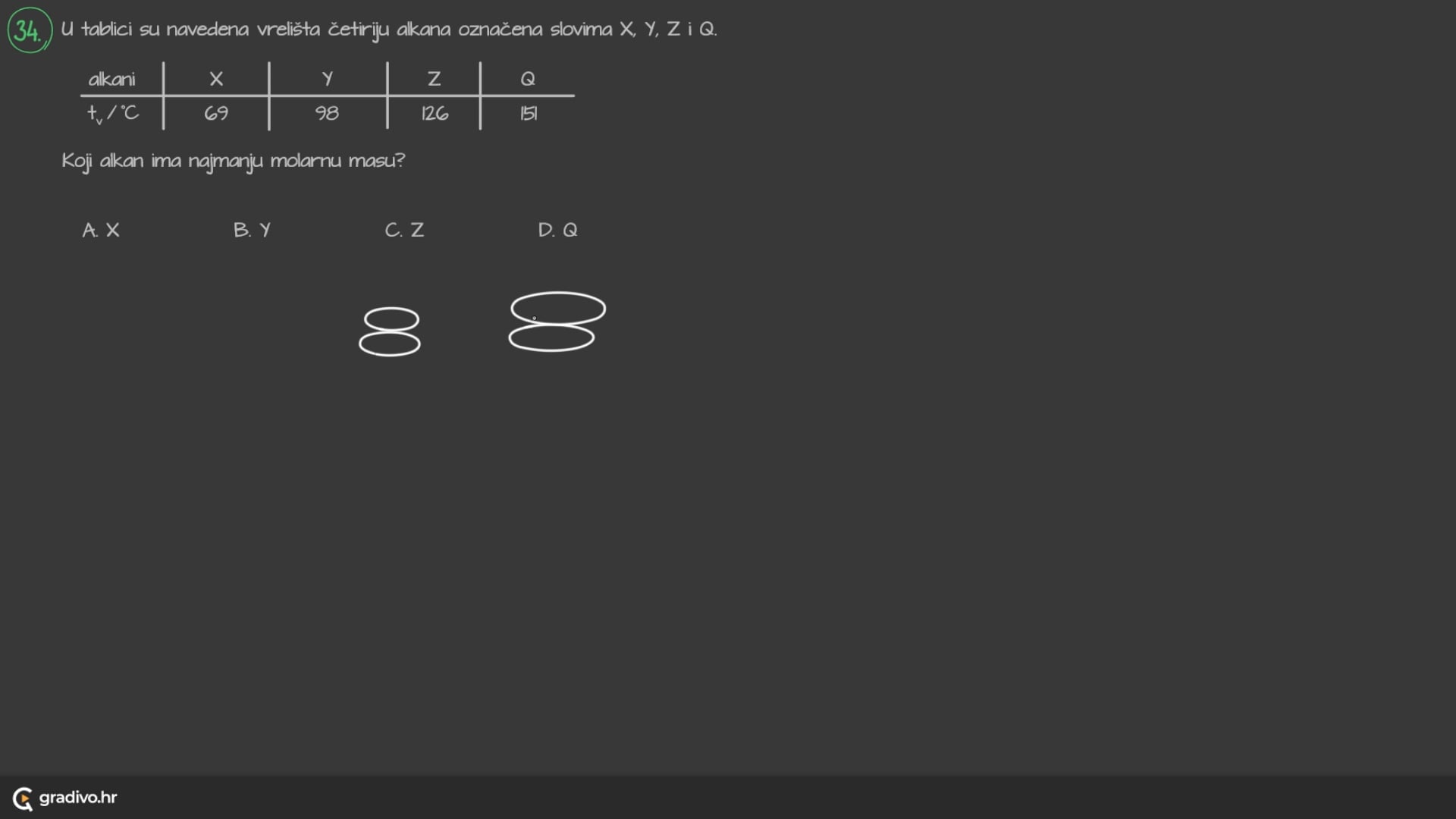 Razgranatiji ugljikovodici imaju niža tališta i vrelišta u odnosu na ravnolančaste zbog manjih dodirnih površina, što dovodi do slabijih Londonovih sila.