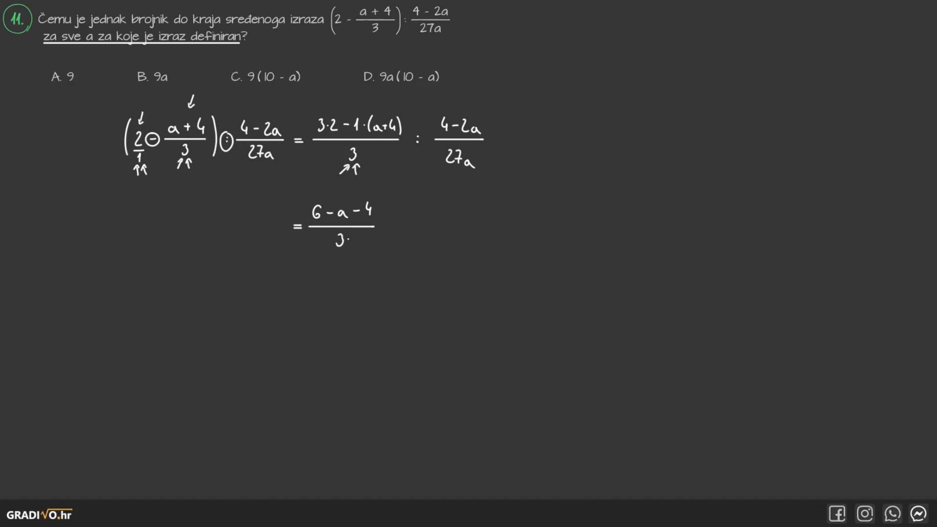 4. korak - Sredimo brojnik, odnosno pomnožimo, zbrojimo i oduzmemo sve što možemo u gornjem dijelu novog, velikog razlomka.