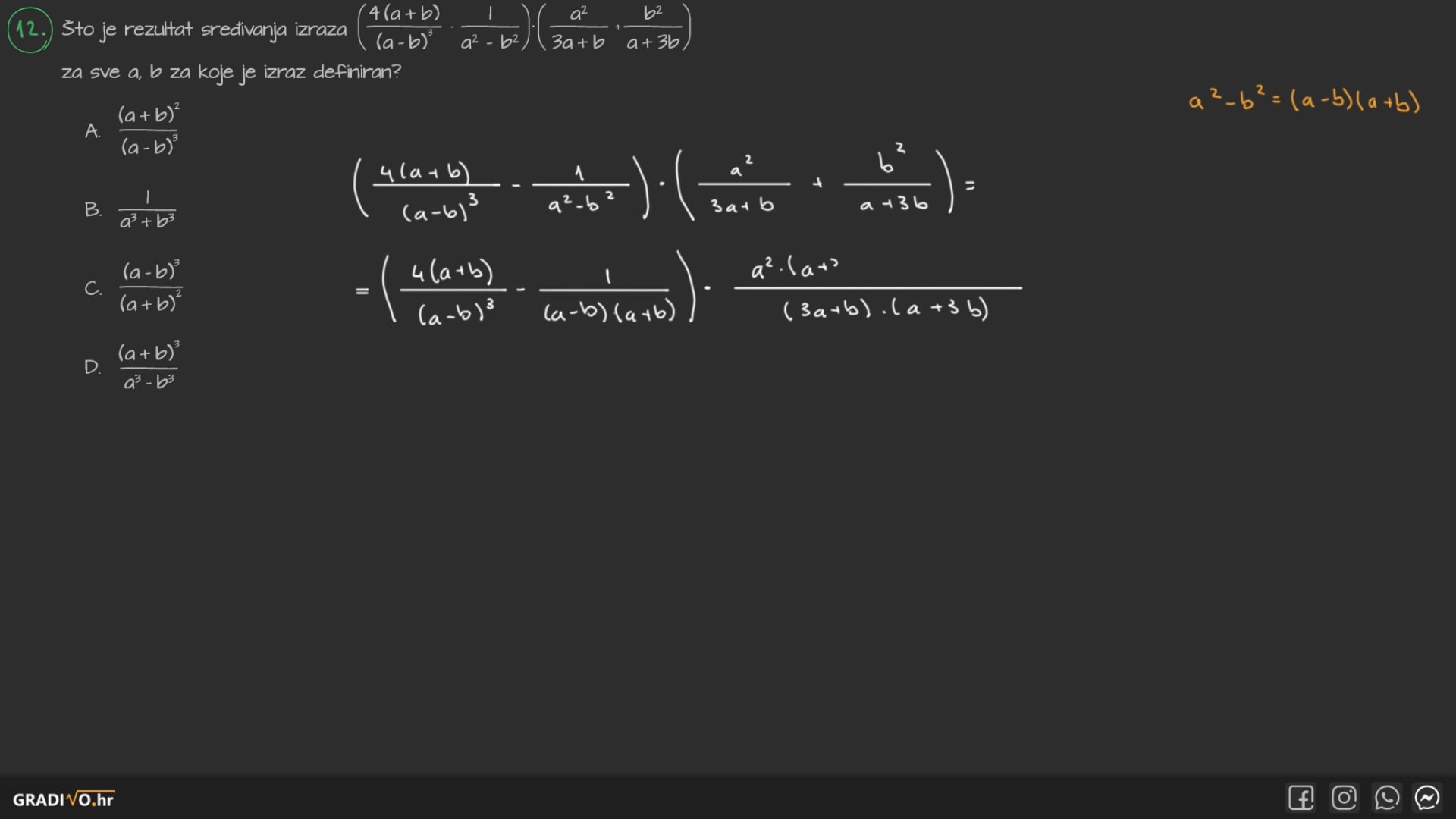Zbrajanje i oduzimanje algebarskih razlomaka provodi se u 4 koraka.