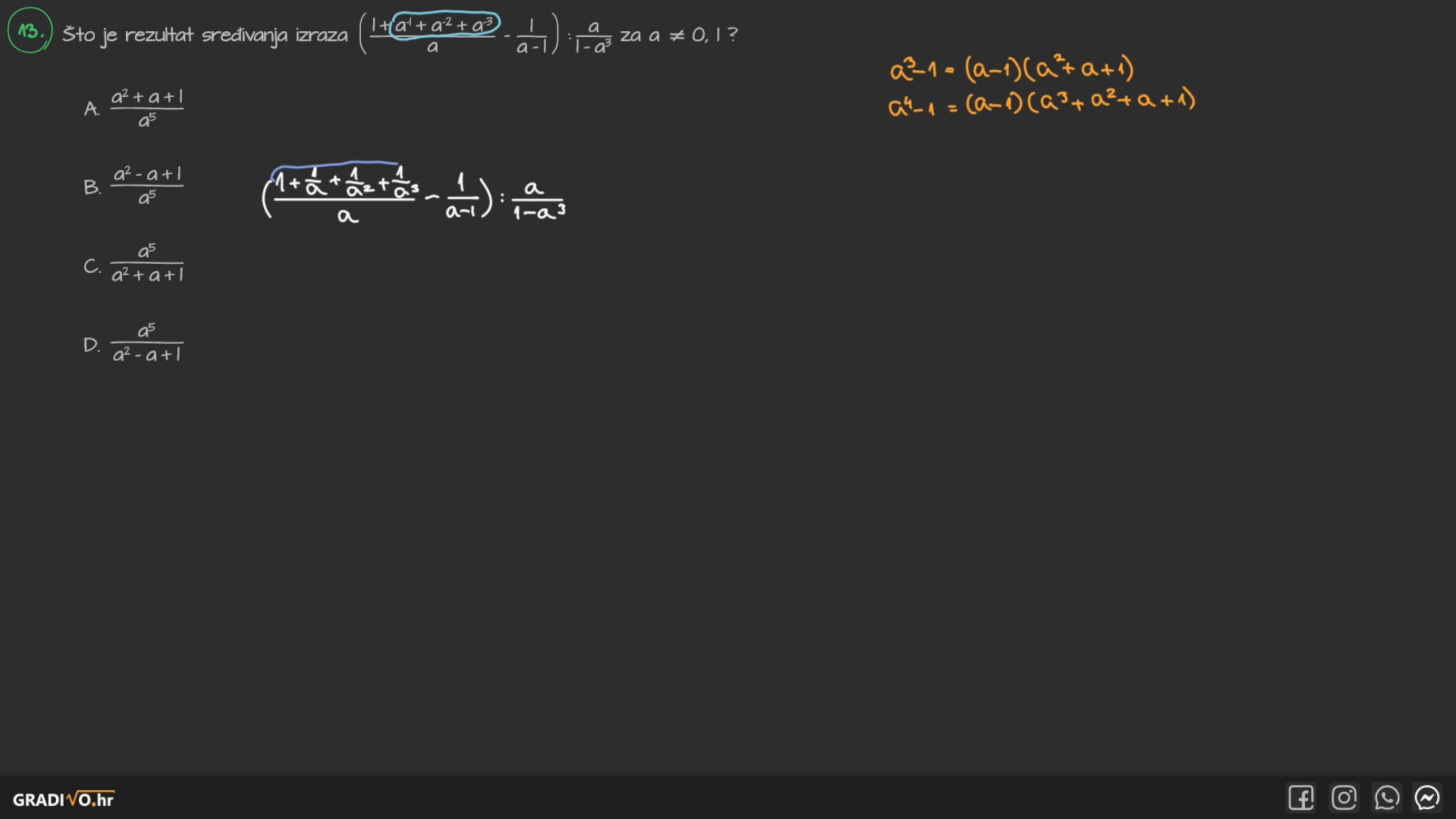3. korak - Podijelimo novi, veliki nazivnik s nazivnikom prvog razlomka, odnosno od velikog razlomka uzmemo dijelove koje prvi razlomak nema te ih pomnožimo s brojnikom tj. s onime što piše gore u razlomku. Prepišemo plus ili minus koji se nalazio iza razlomka kojeg smo gledali. Postupak ponavljamo za svaki razlomak koji zbrajamo ili oduzimamo.