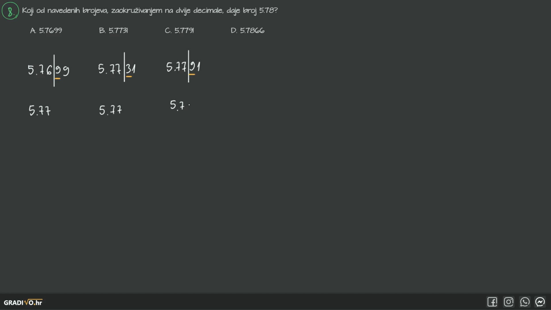 Ako je ta znamenka manja od 5, broj prepisujemo do znamenke na koju trebamo zaokružiti.