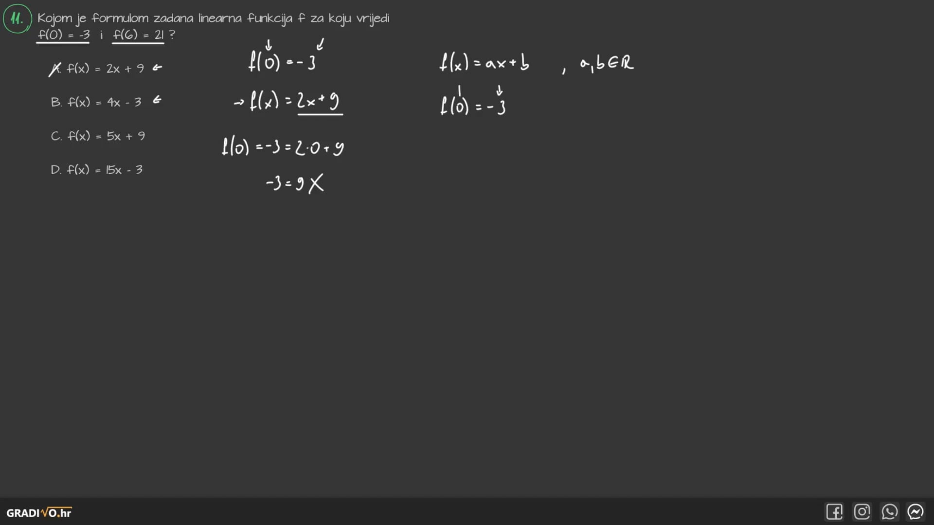 U linearnoj funkciji, umjesto $a$ i $b$ bi trebali stajati brojevi, a $x$ i $f(x)$ (odnosno $y$) ostaju slova.