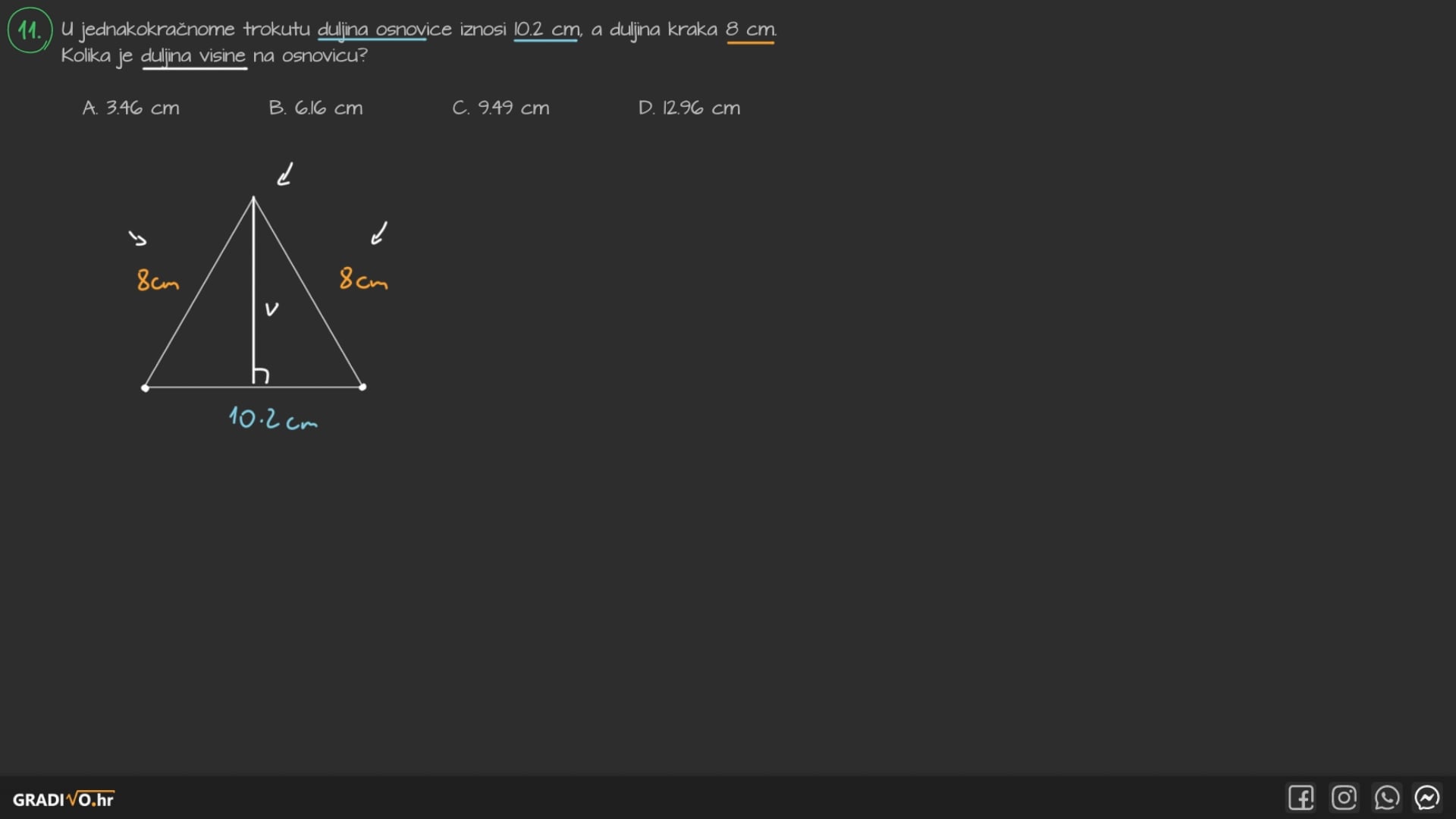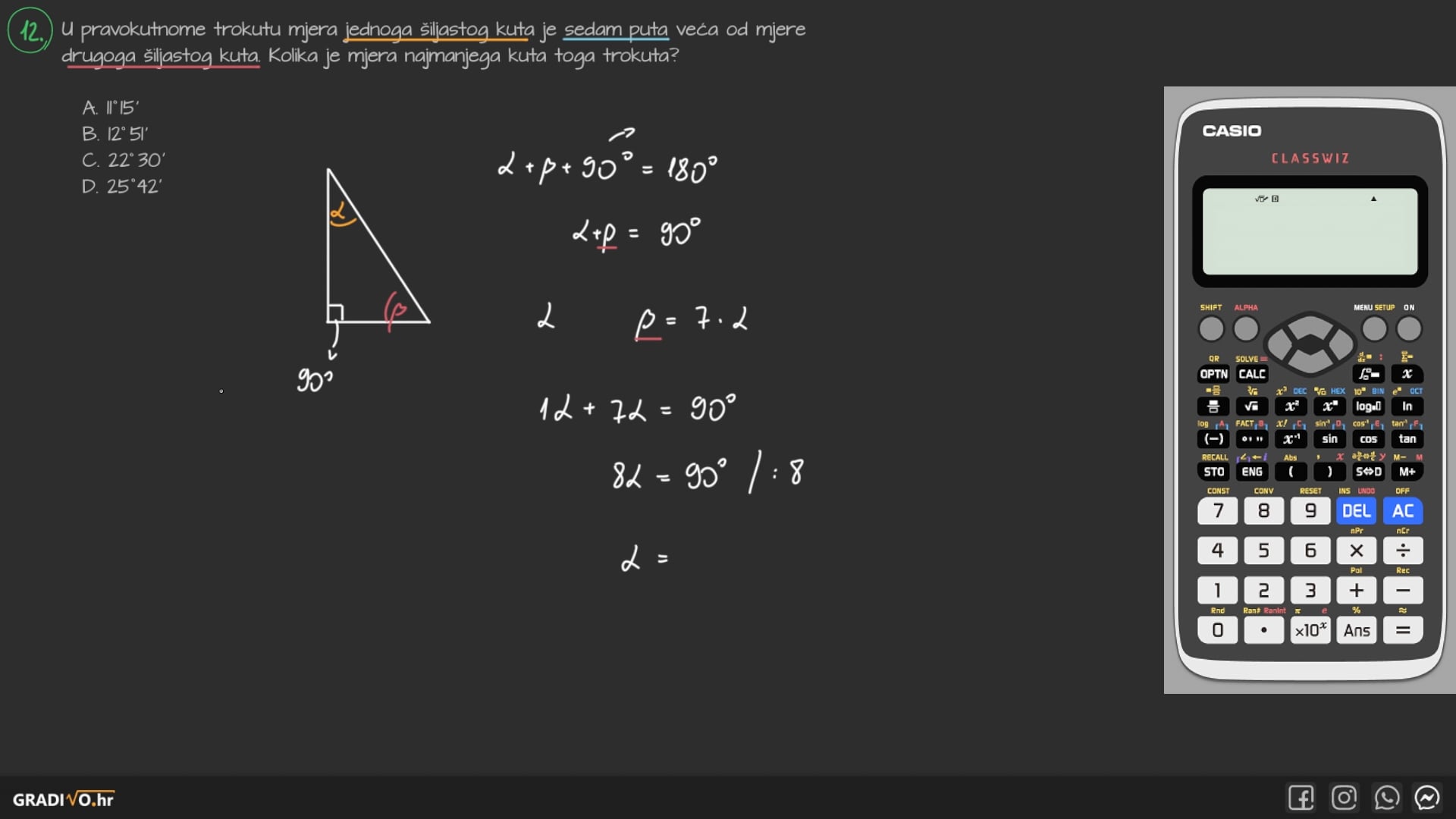 Površina pravokutnog trokuta$ P = \frac{a \cdot b}{2} $