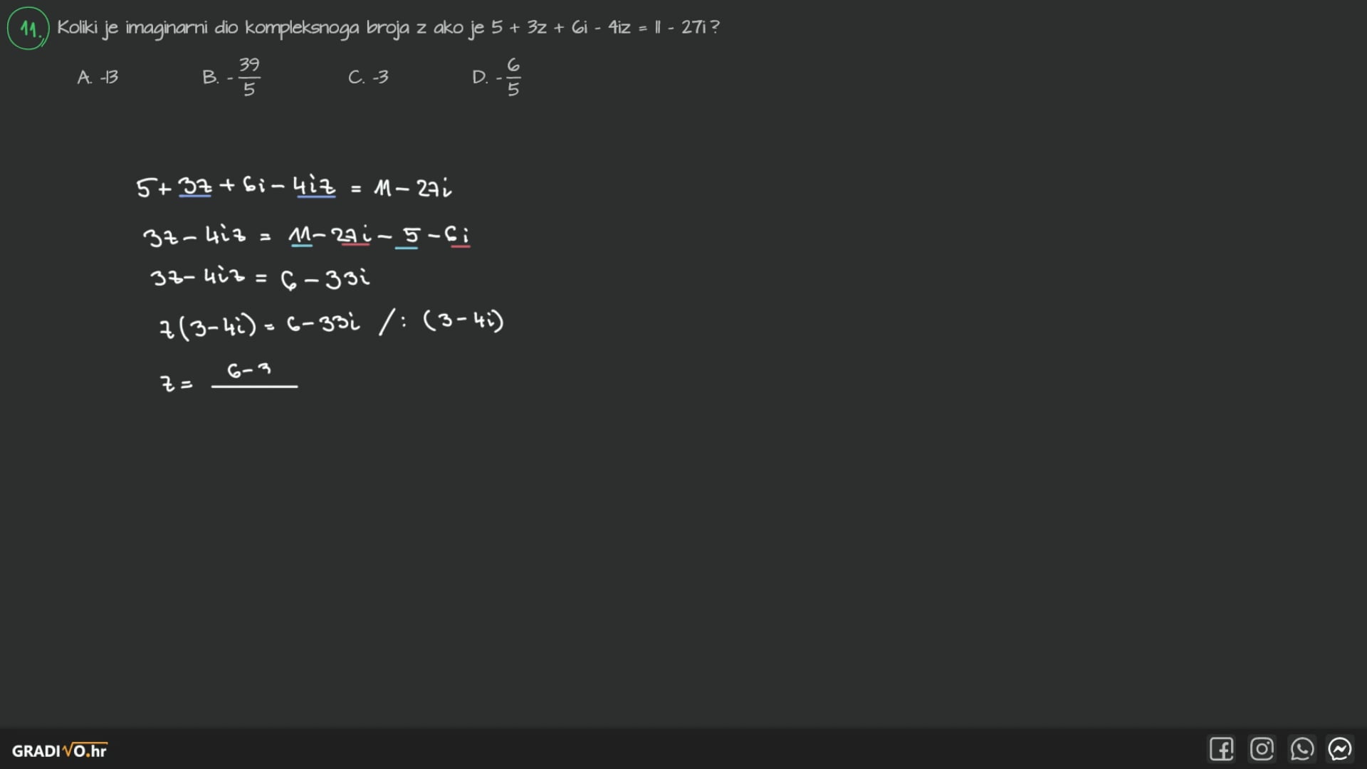 2. Gore napravimo množenje kao što znamo, a dolje isto pomnožimo zagrade ili iskoristimo formulu za množenje kompleksno konjugiranih brojeva (nalazi se malo niže).