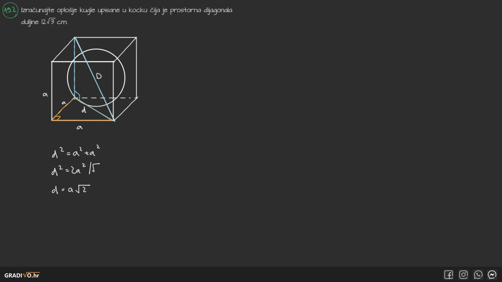 Sfera je "rub" kugle, ono što ju obavija izvana, skup točaka koje su od središta $S$ udaljene točno za $R$.