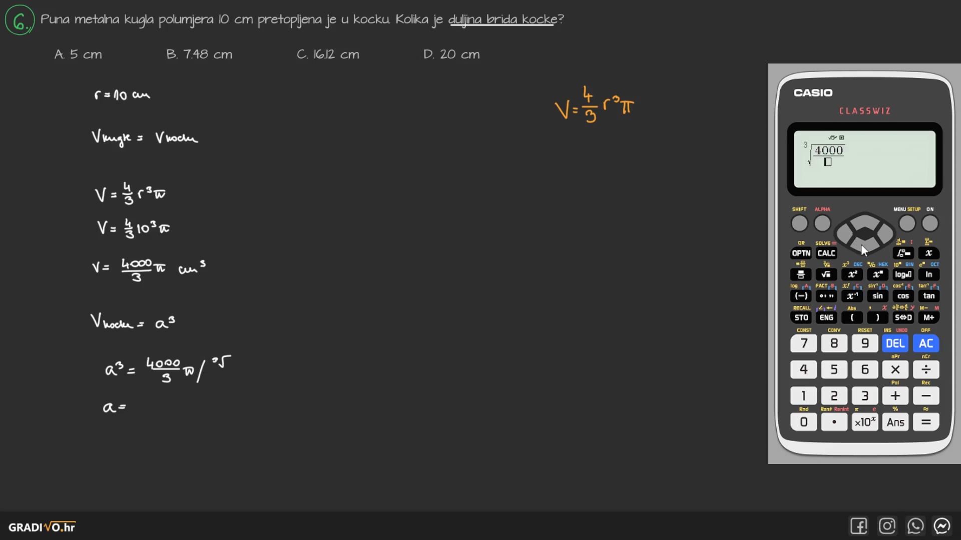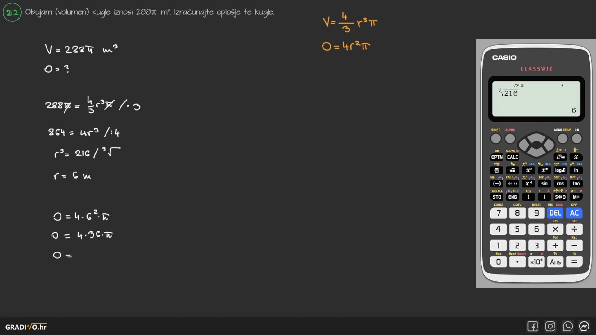Oplošje je površina lika koji ograđuje kuglu. Drugim riječima, to je površina sfere. Računa se kao četverostruki umnožak kvadriranog kuglinog radijusa $R$ i broja $\pi$.