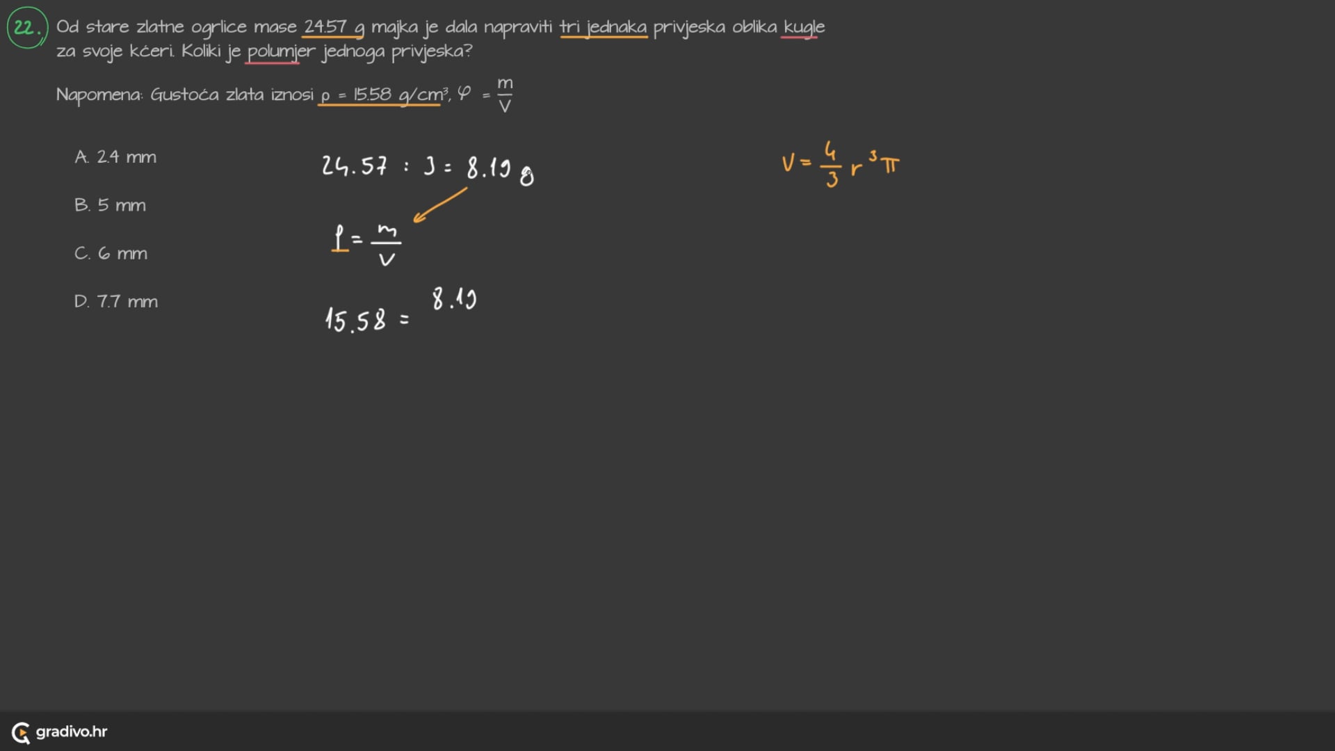 Kugla je geometrijsko tijelo koje obuhvaća sve točke koje su od njena središta $S$ udaljene manje ili jednako nekoj vrijednosti $R$, koju zovemo polumjer (radijus) kugle.
