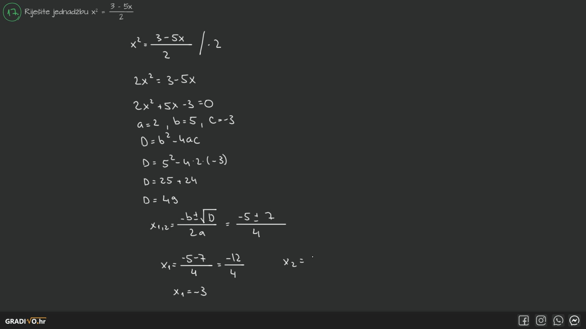 Za dobivanje rješenja kvadratne jednadžbe koristimo kalkulator ili formulu: