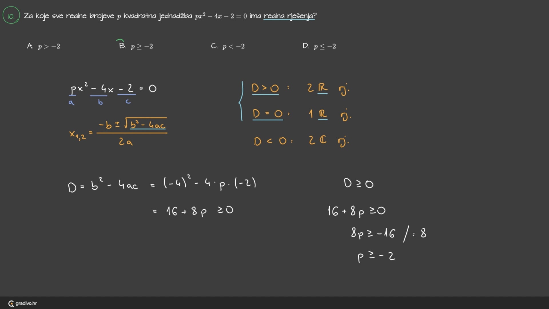 Diskriminanta utječe na broj i vrstu rješenja kvadratne jednadžbe. Imamo 3 slučaja: