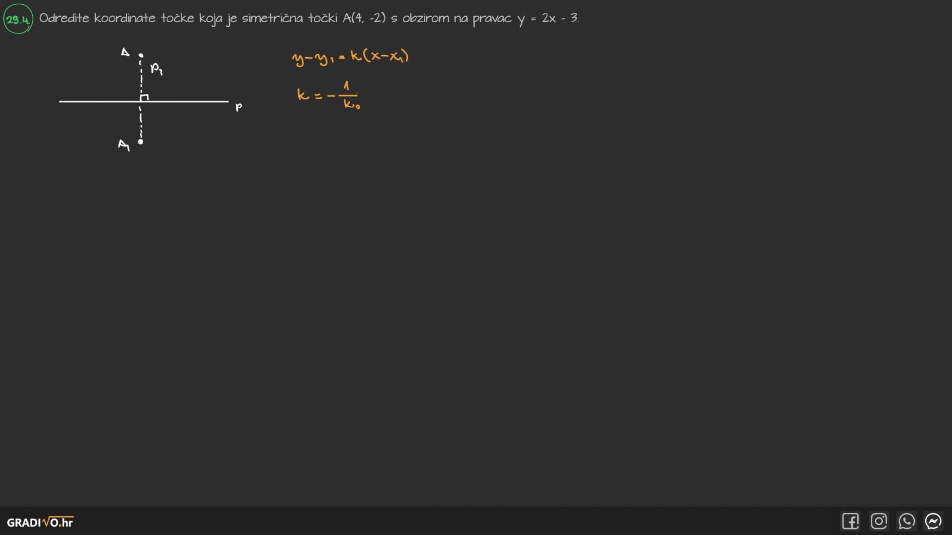 2) Svaka točka elementa kojeg preslikavamo, njena projekcija i središte simetrije moraju ležati na istom pravcu.