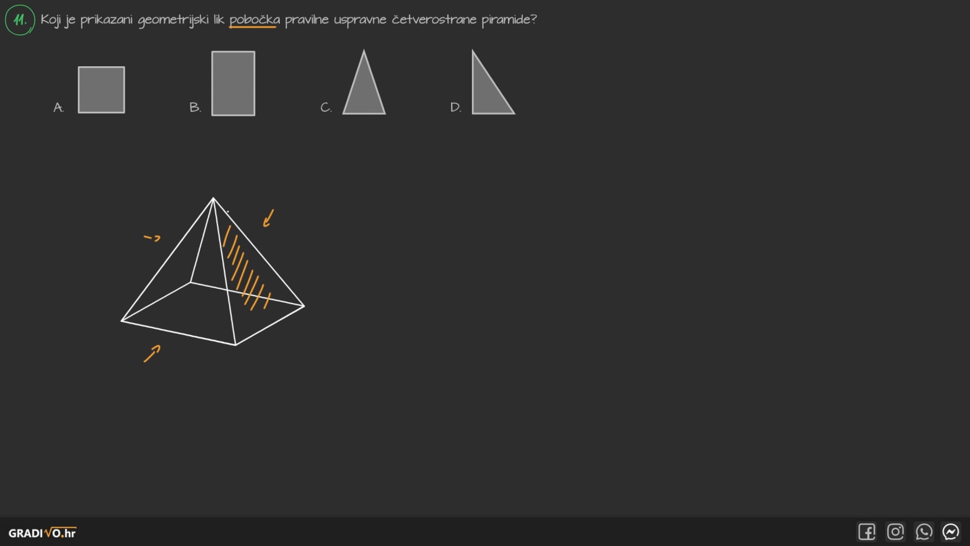 Mnogokut ćemo kao i kod prizmi zvati baza, a nastale trokute spojene na njega pobočke. Sve pobočke skupa zovemo pobočje.