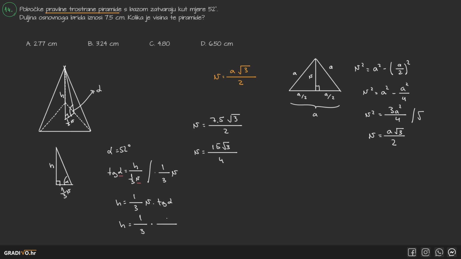 Visina piramide je udaljenost od vrha piramide do njene baze. Visina pobočke je visina trokuta koji je pobočka piramide.