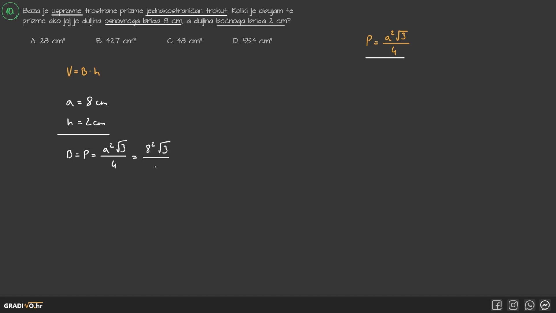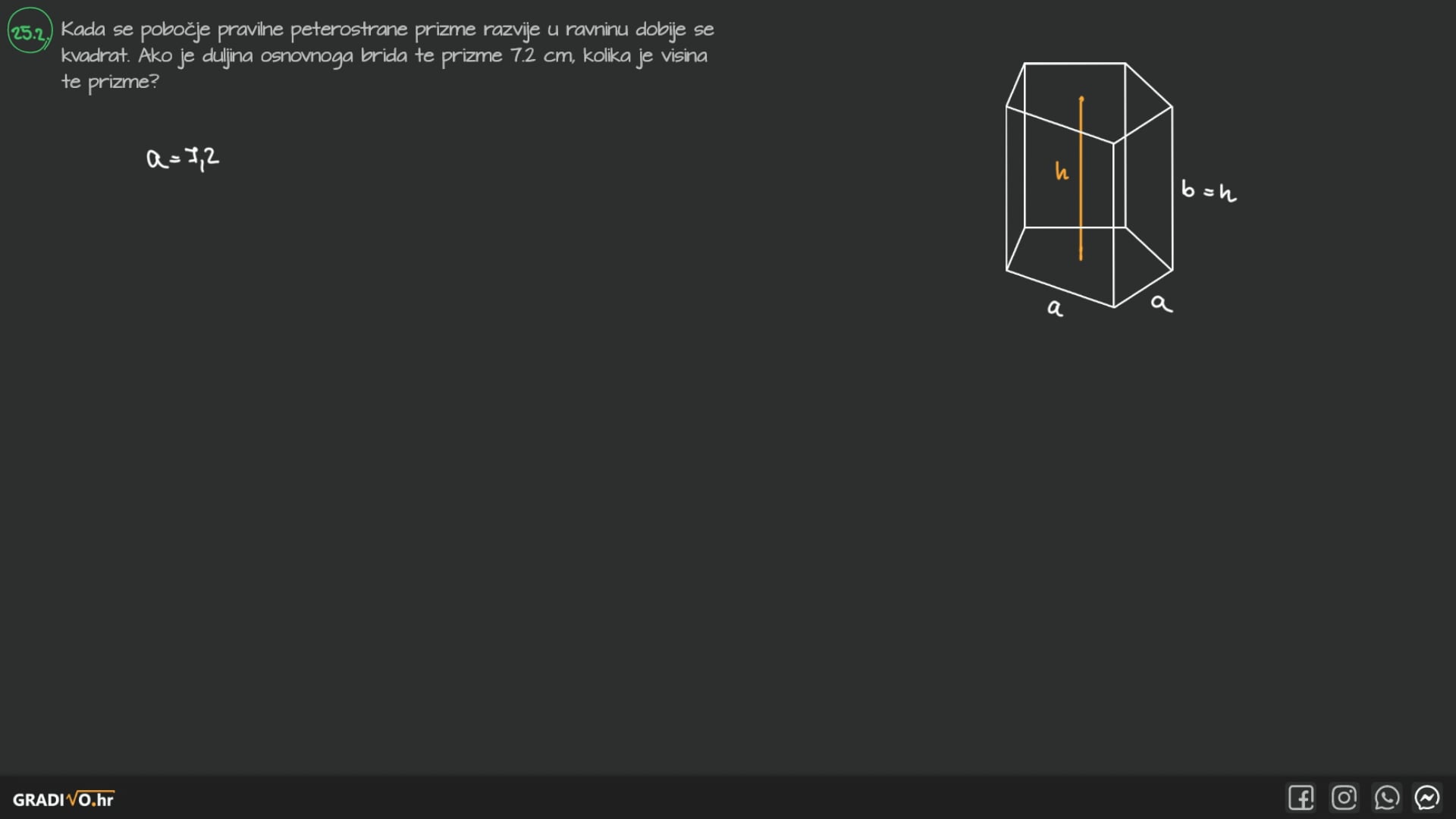Visina prizme je udaljenost između dvije baze. Ako je visina jednaka bočnom bridu prizme, onda je prizma