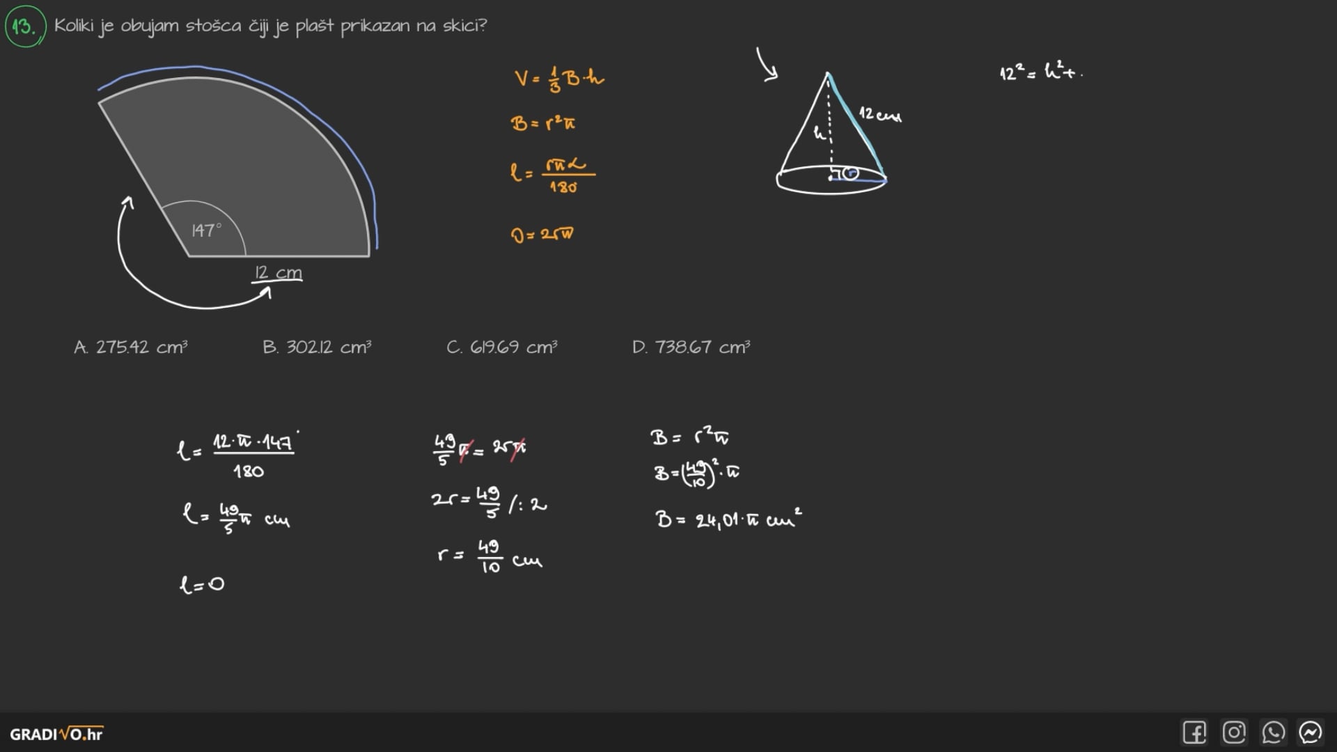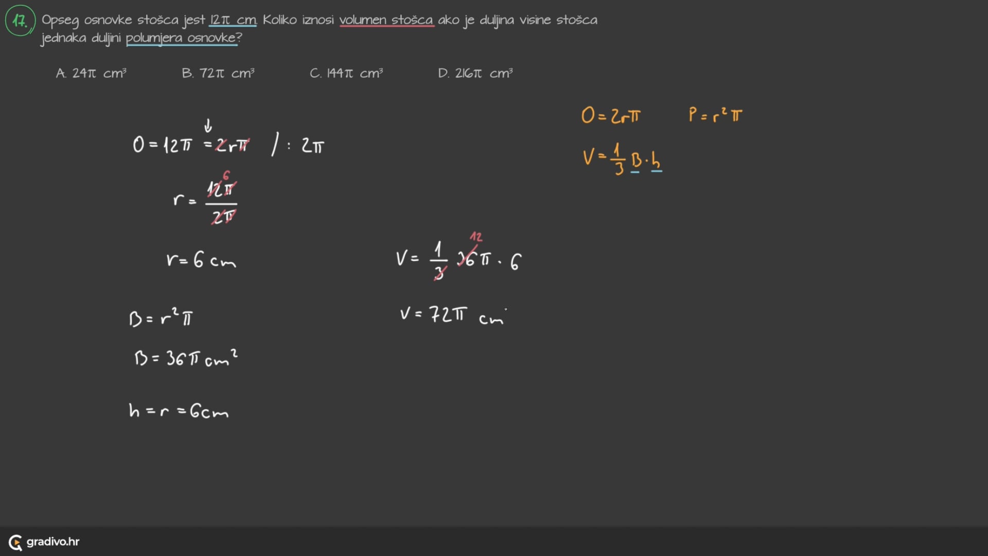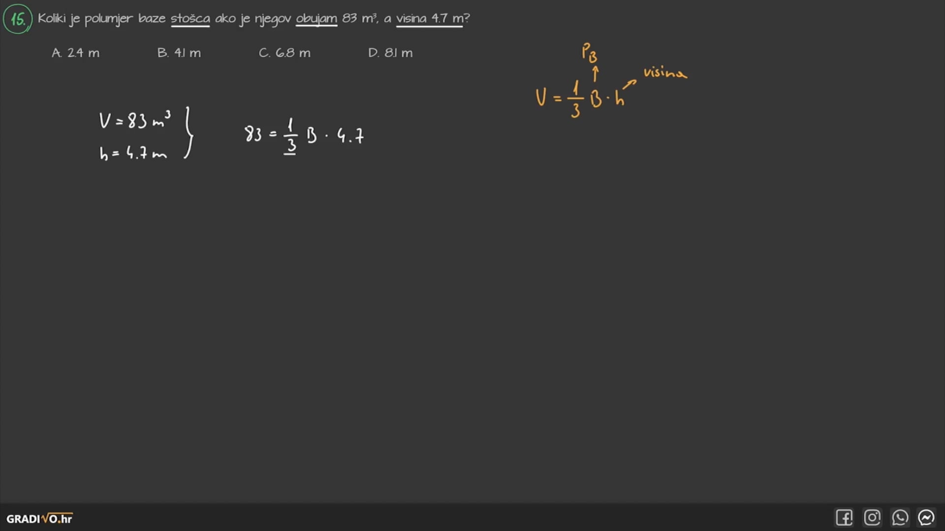 Oplošje je površina svih likova koji ograđuju stožac. Računa se kao zbroj površine baze $B$ i površine plašta $P$. Plašt je zakrivljena površina kojoj površinu računamo kao umnožak polumjera kruga $r$, konstante $\pi$ i izvodnice $s$.