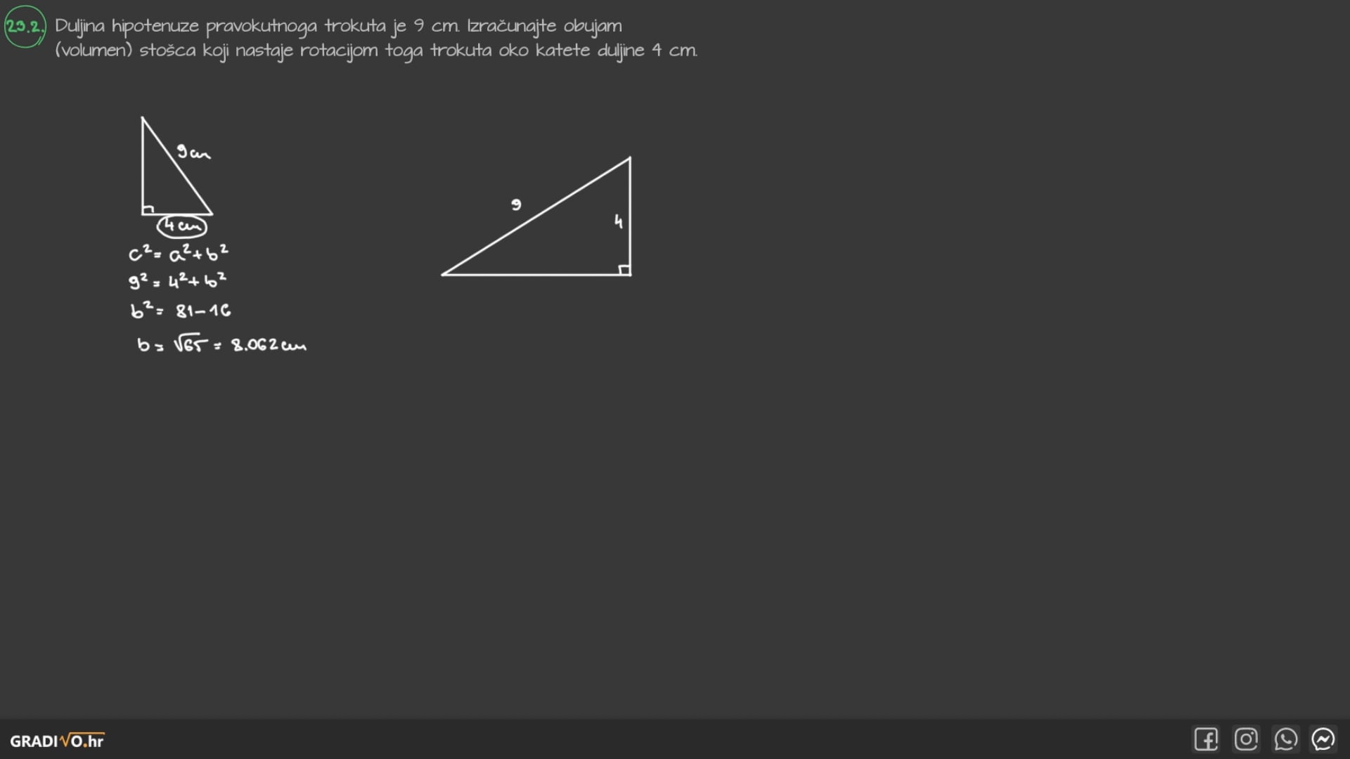 Osni presjek stošca je jednakokračan trokut s osnovicom duljine $2r$ i krakom duljine $s$.