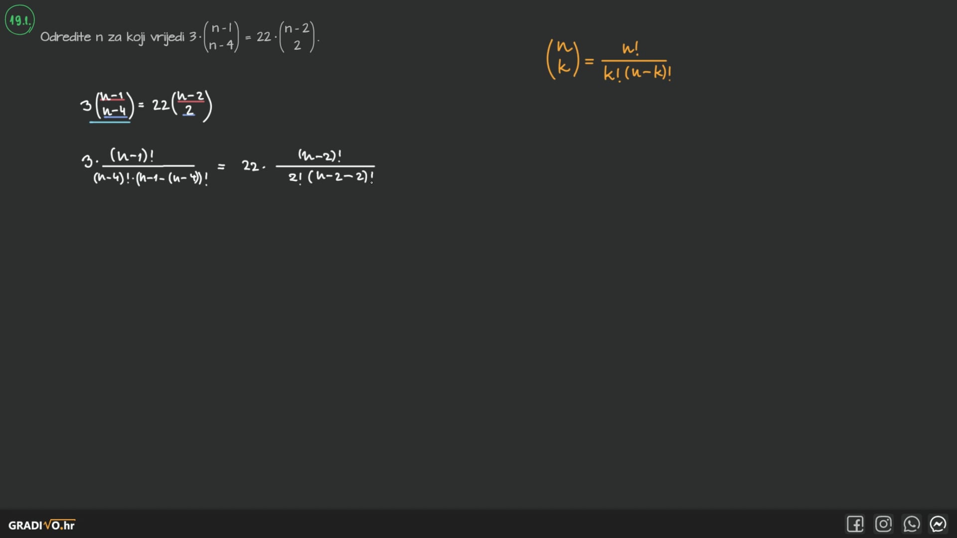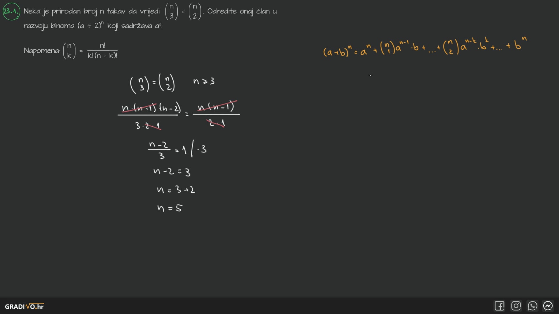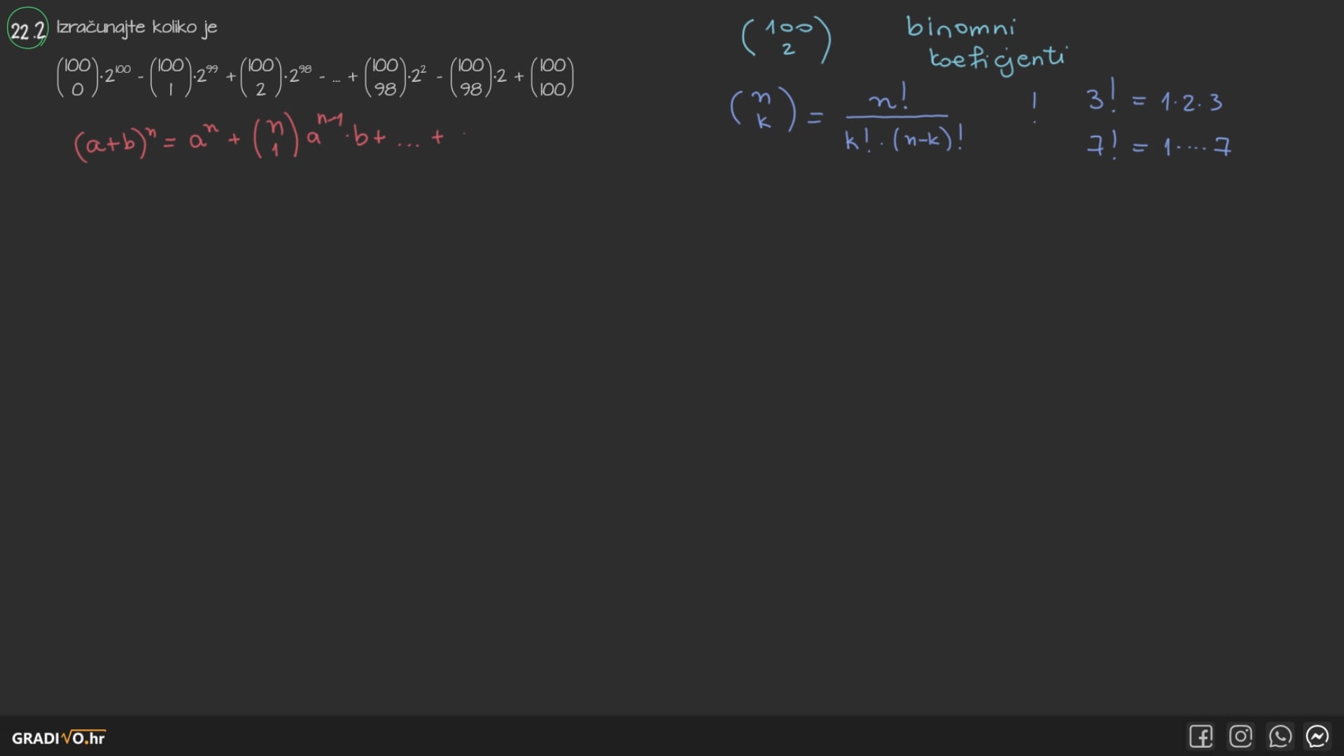 Također vrijedi $ \left( \begin{array}{c} n \\ n \end{array} \right)=1 $.