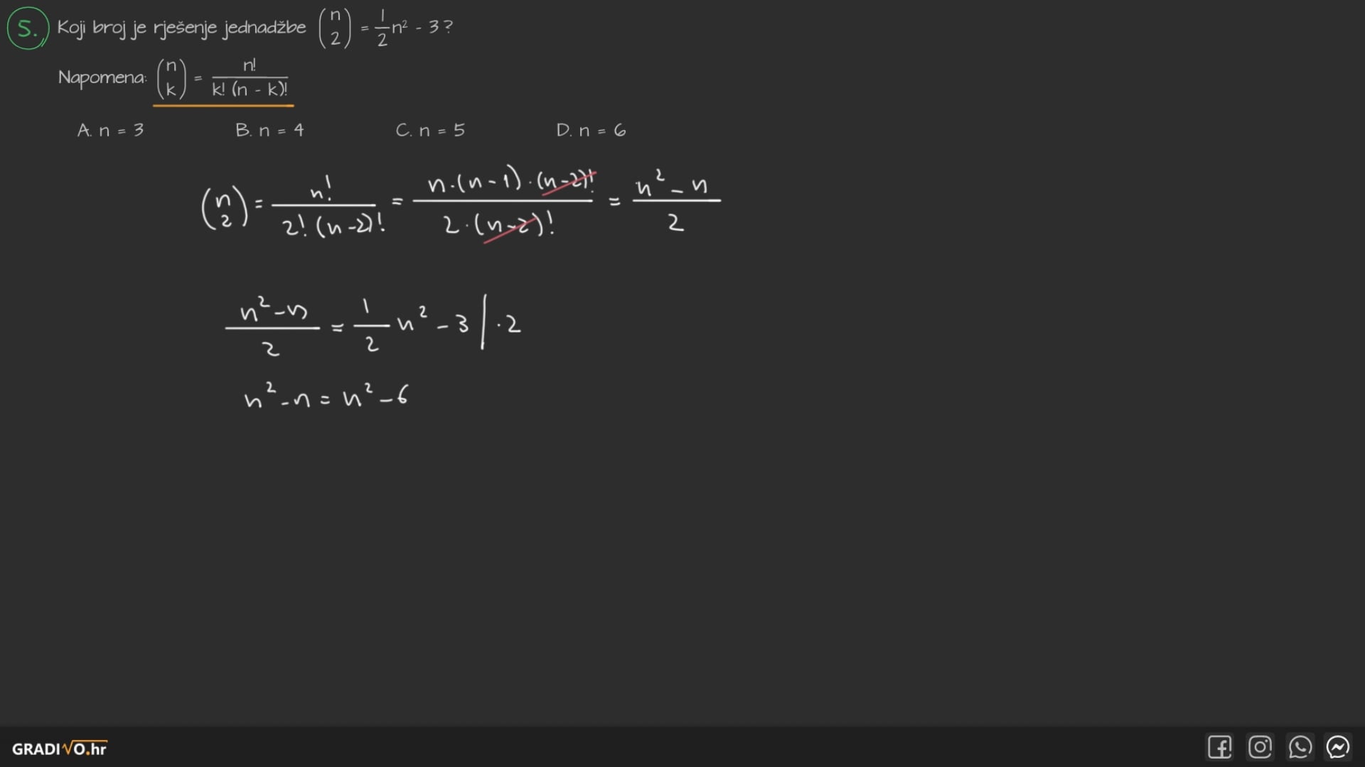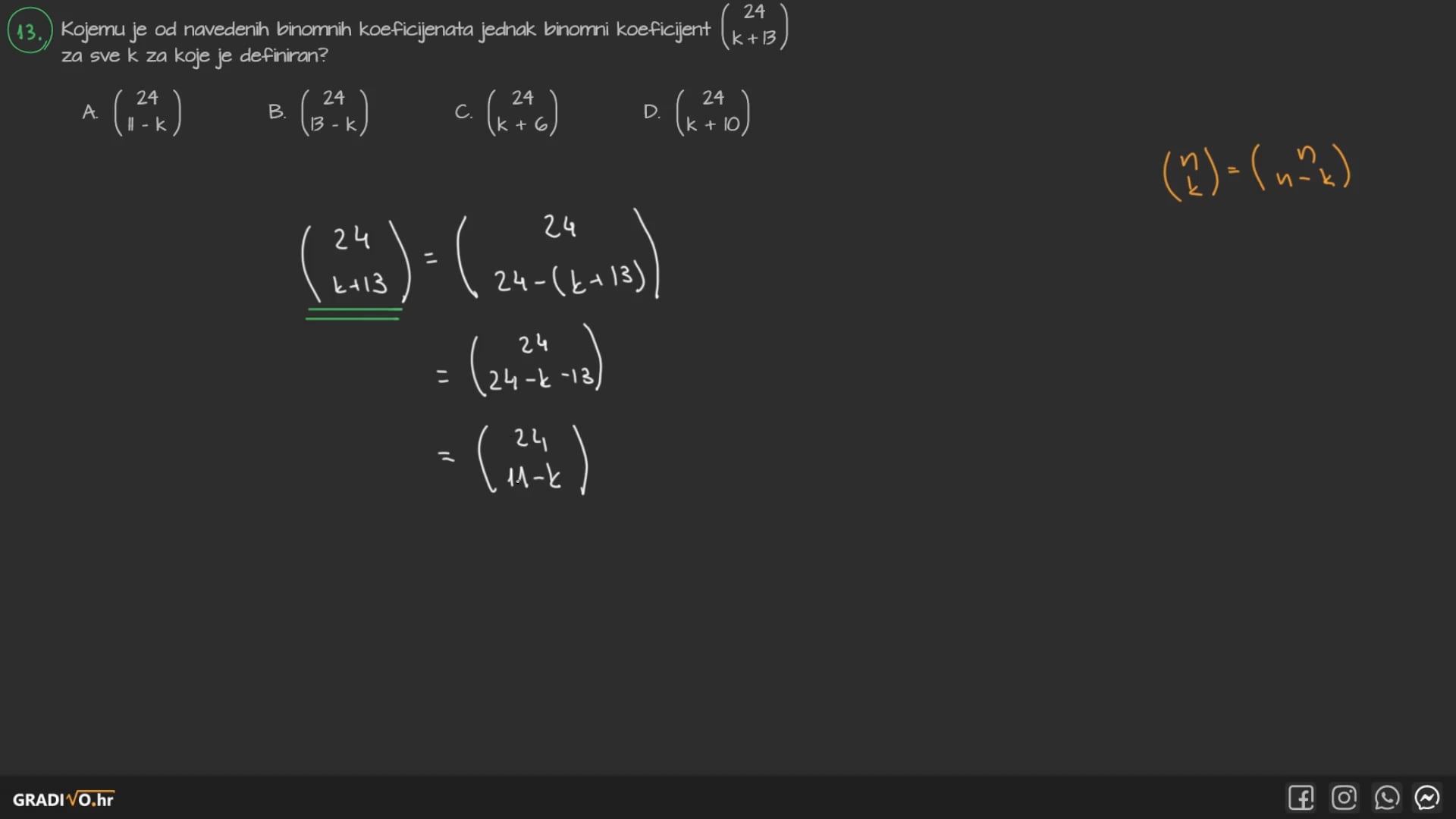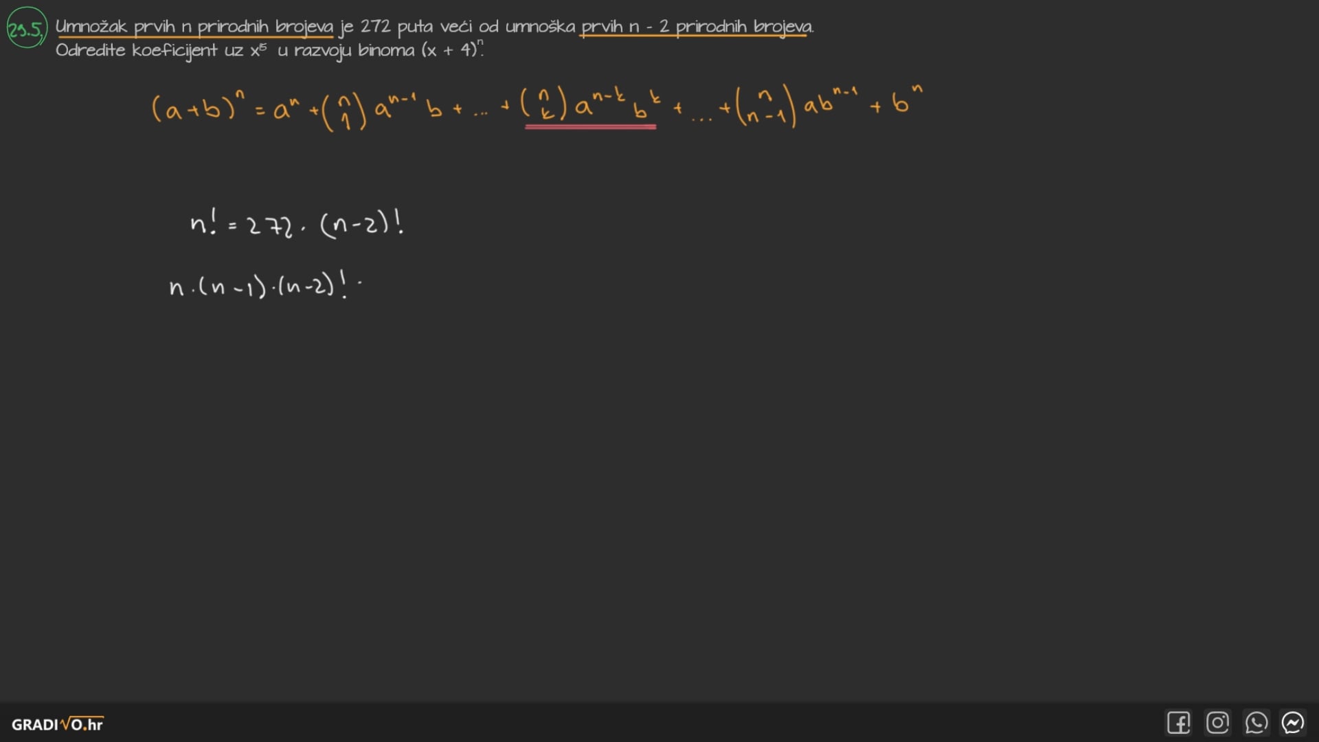 Također vrijedi $ \left( \begin{array}{c} n \\ n \end{array} \right)=1 $.