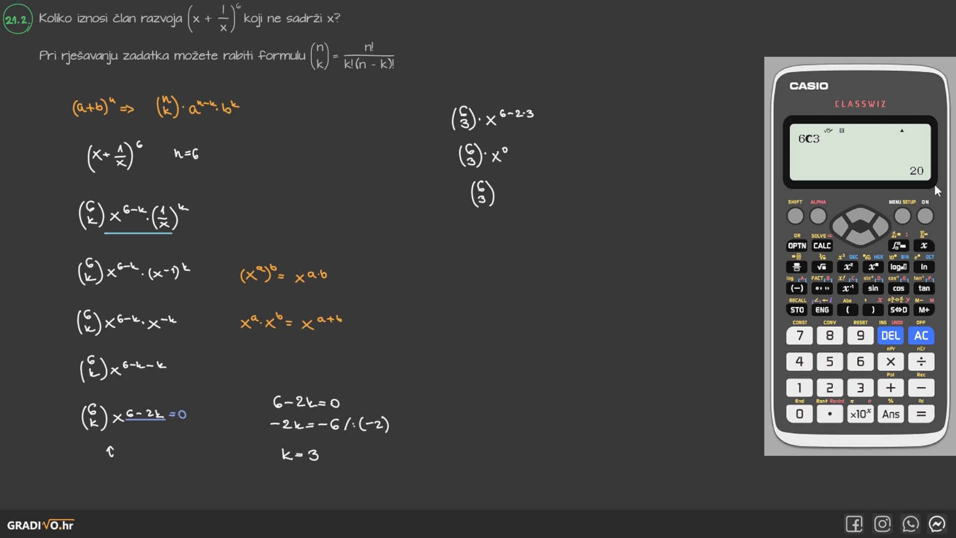 Posebno, kada je $k=0$ vrijedi $ \left( \begin{array}{c} n \\ 0 \end{array} \right)=1 $.