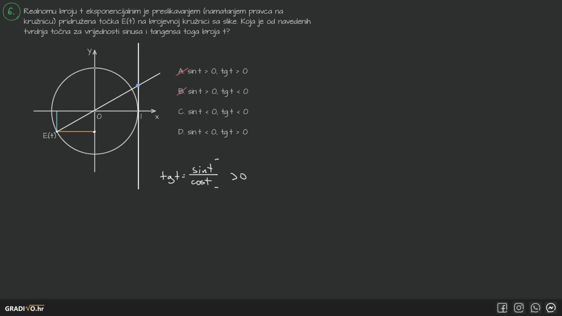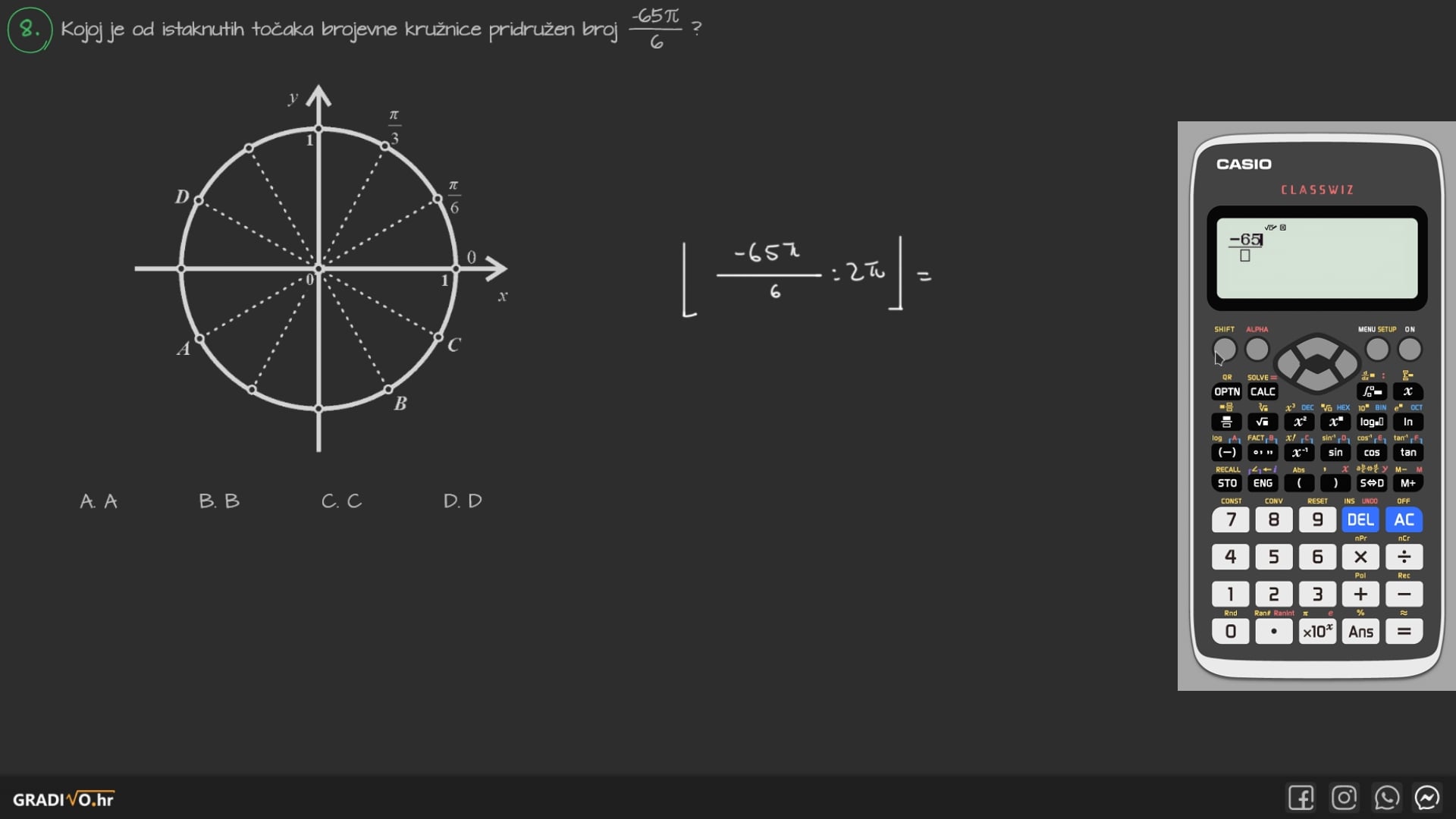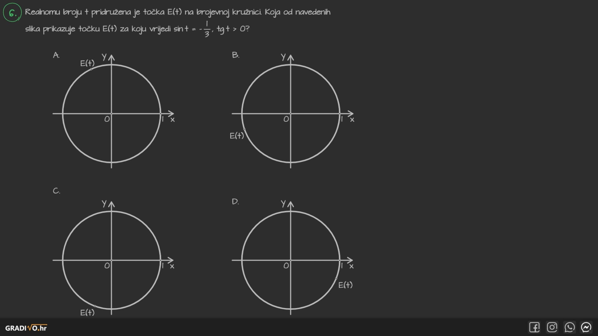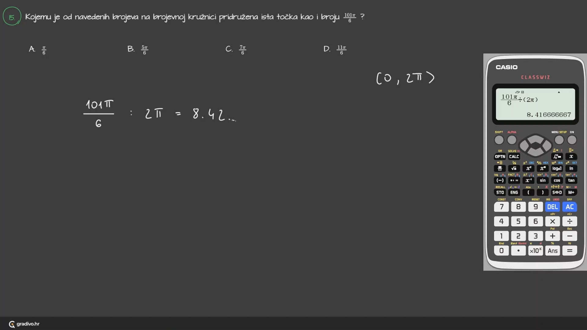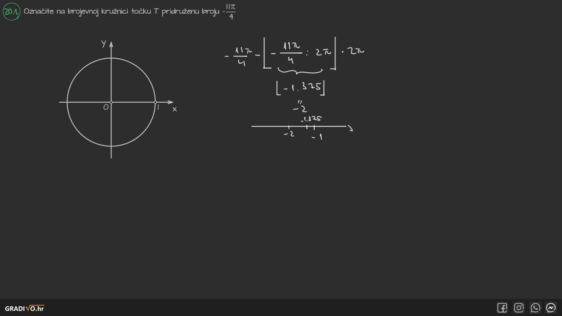 Kao što smo rekli, u trigonometriji ćemo češće koristiti radijane, a ne stupnjeve. Tako brojeve na brojevnoj kružnici možemo zvati i kutovima jer upravo njihova pozicija na kružnici govori koliki kut zatvaraju obzirom na $x$-os.