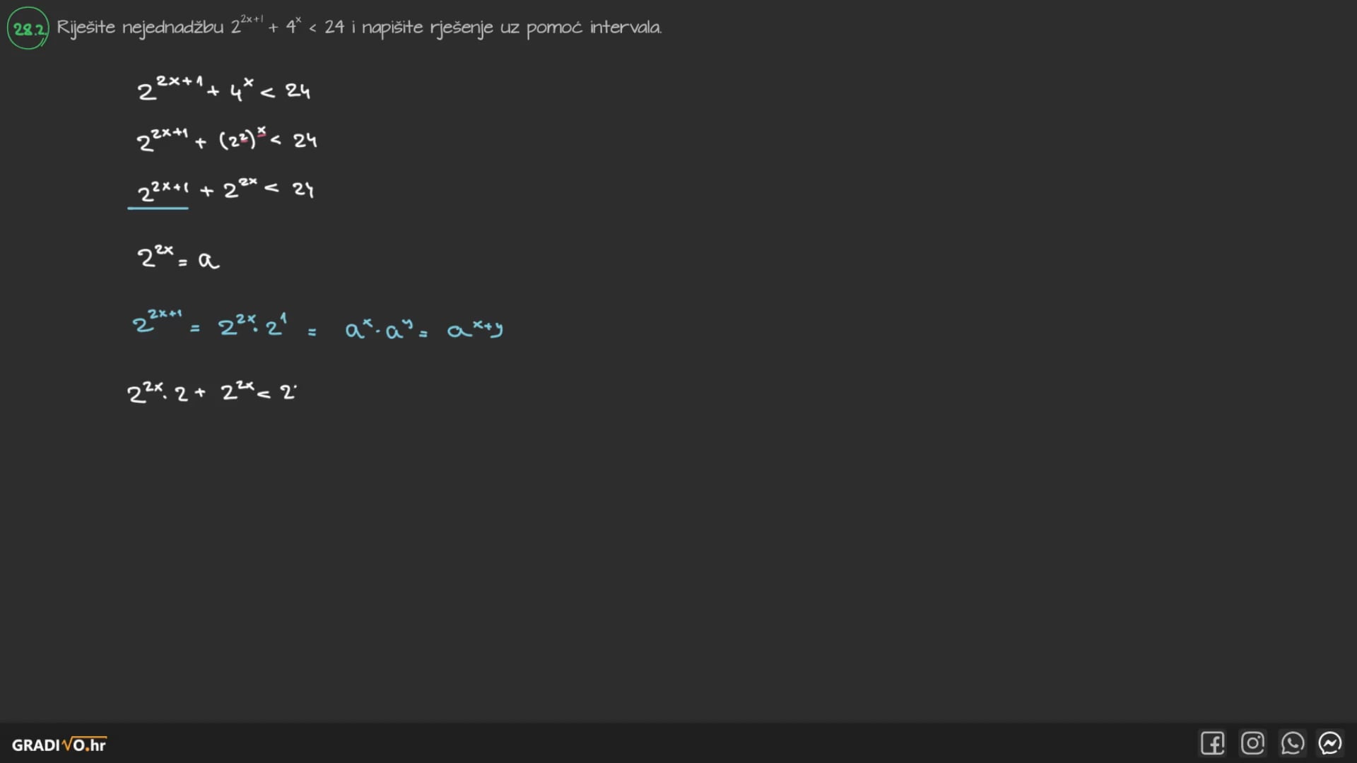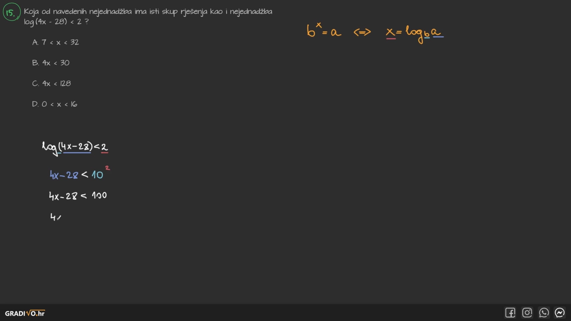 - $0 < a<1$ $\implies$ okrećemo znak nejednakosti
