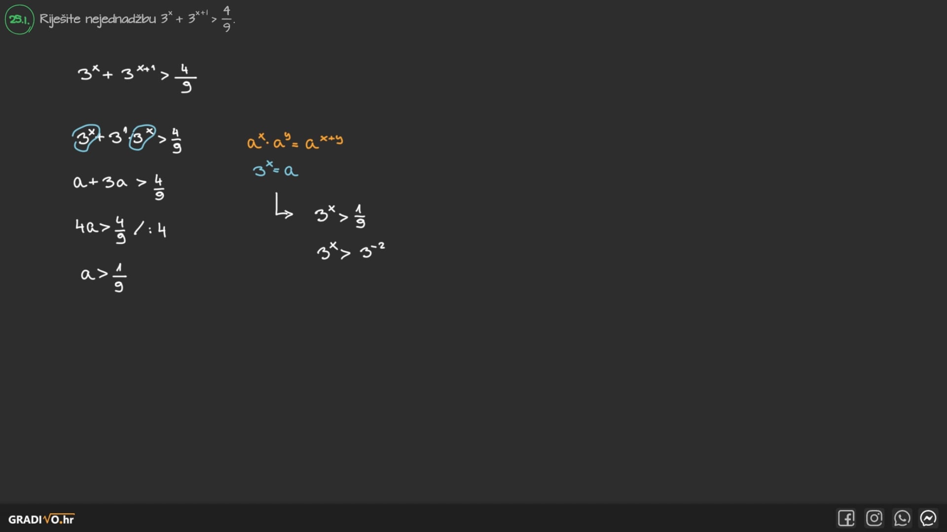 - $a>1$ $\implies$ znak nejednakosti ostaje isti