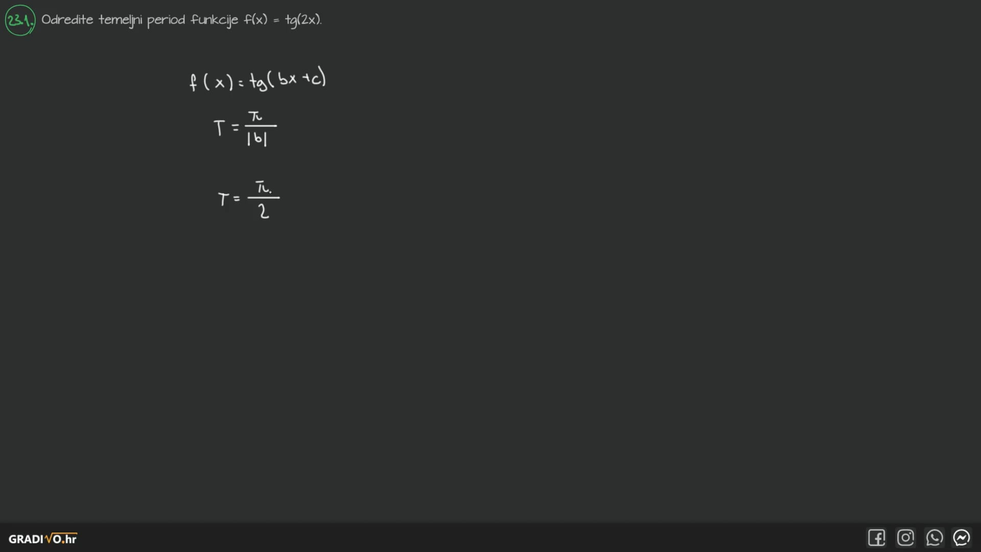 1. Odredimo period funkcije preko formule $P = \frac{\pi}{B}$. Asimptote su pravci $x = \frac{P}{2}$ i $x =- \frac{P}{2}$.