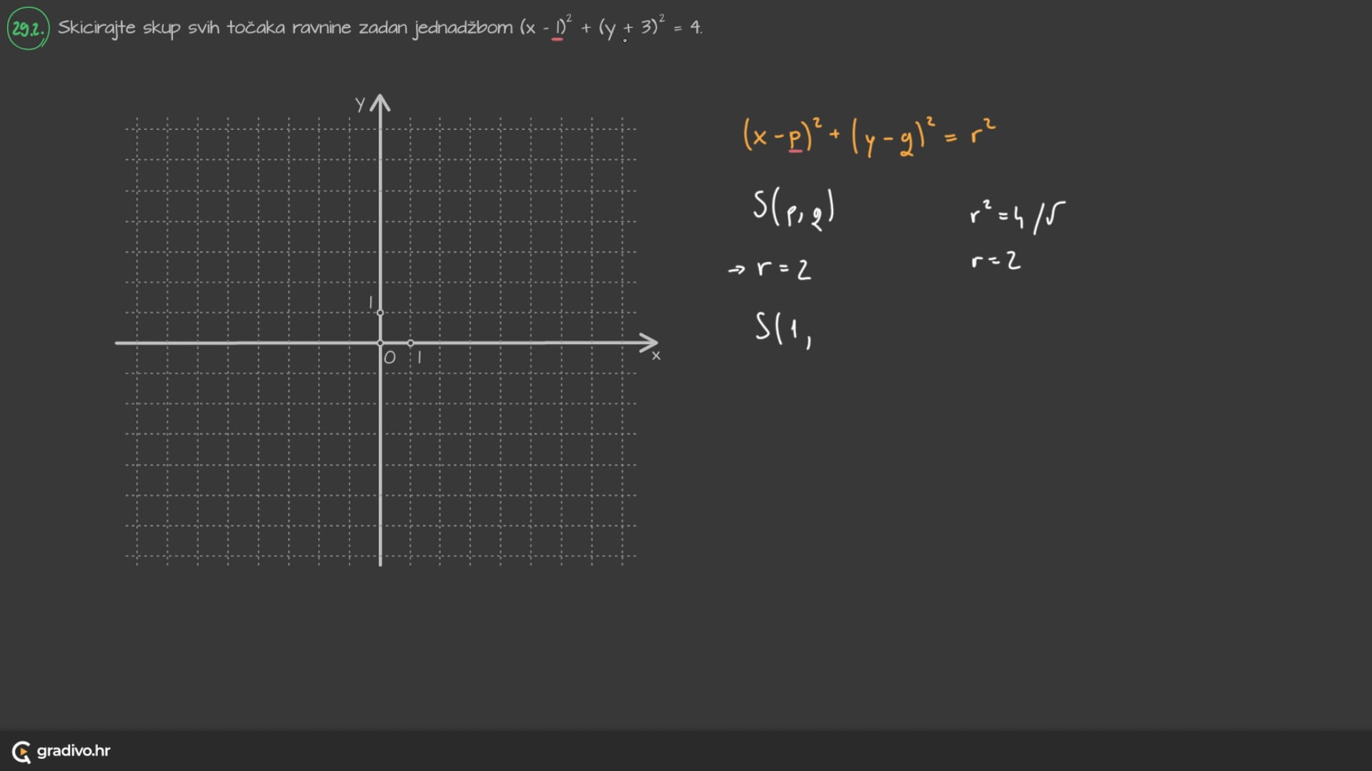 Jednadžba kružnice sa središtem u S(p,q)$ (x-p)^{2}+(y-q)^{2}=r^{2} $