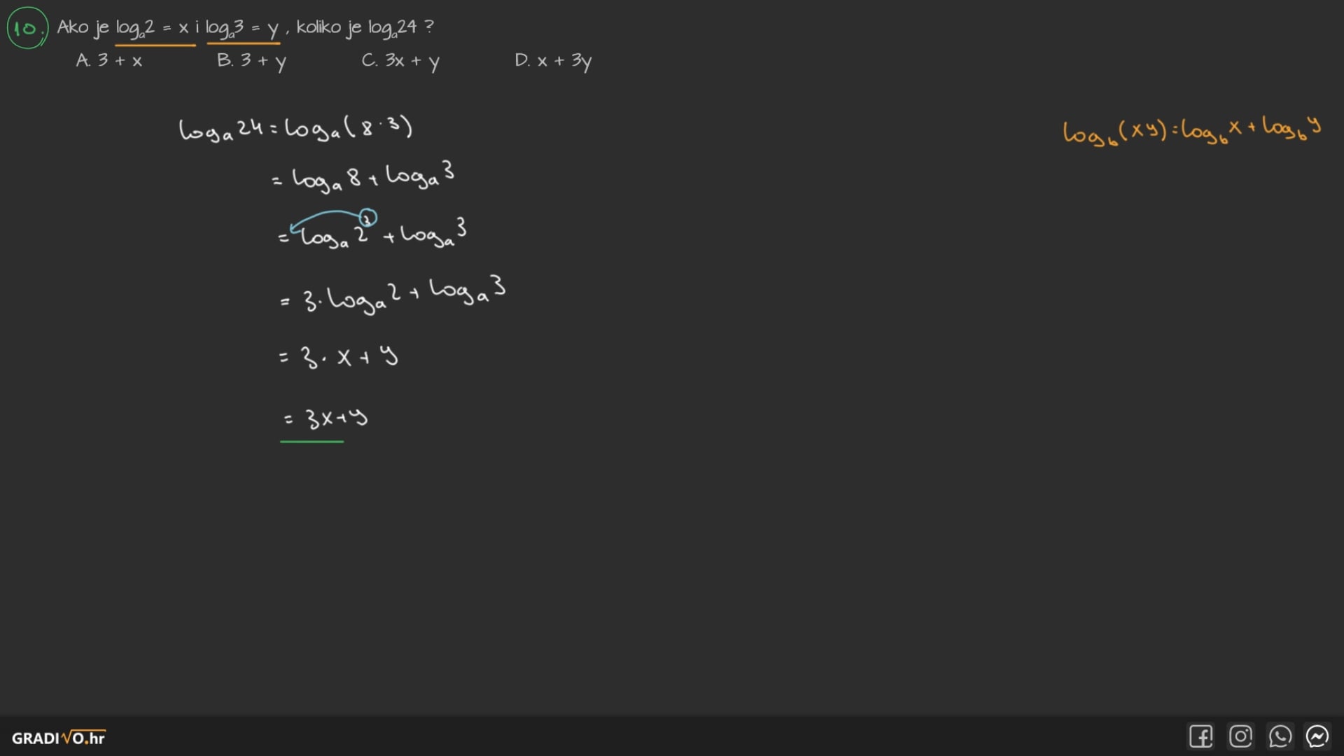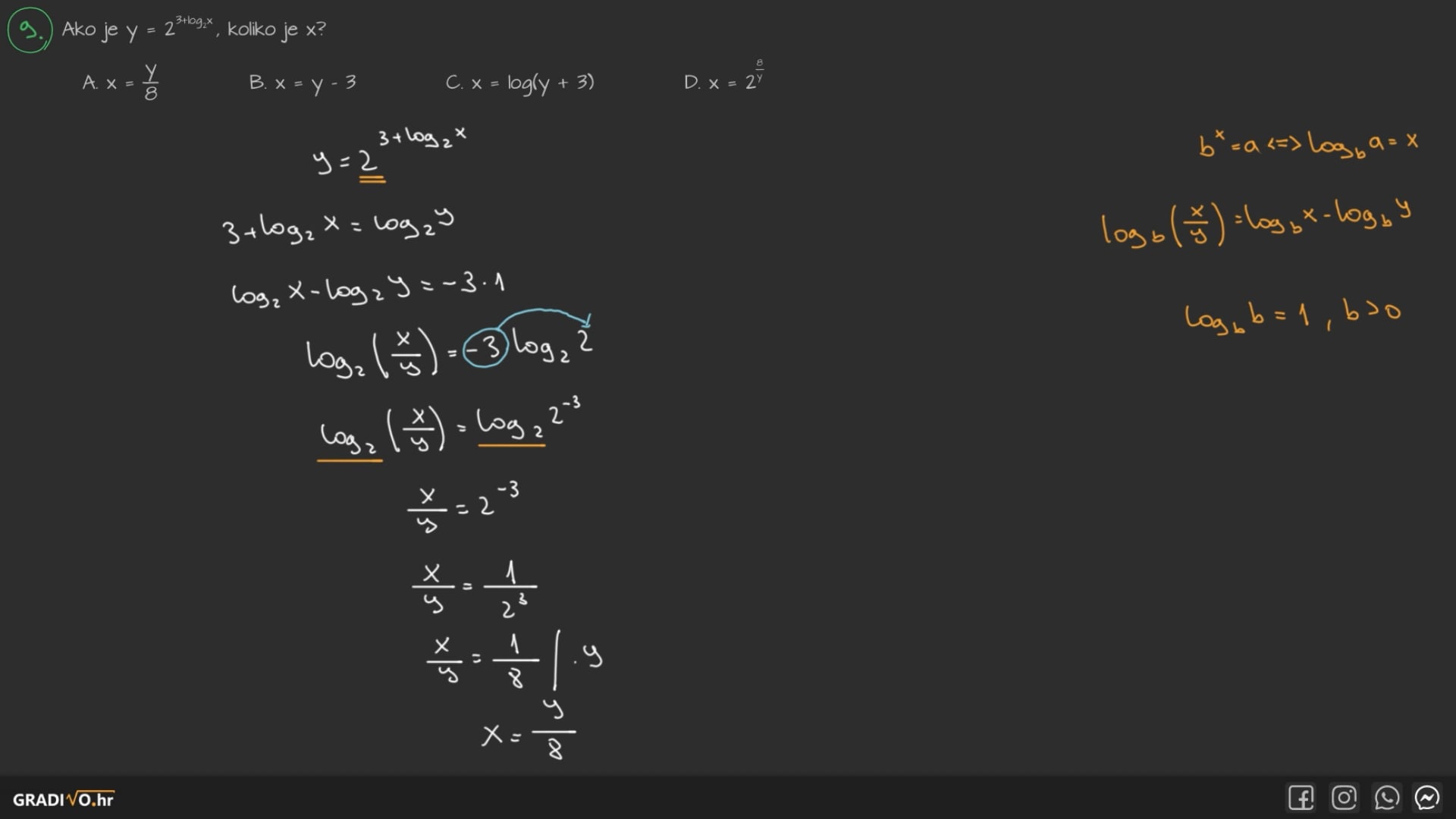 Oprez! Jedino na što trebamo paziti kada koristimo ovaj trik je da nam lijevo od znaka jednako uvijek stoji potencija, odnosno logaritam. Ako to zadovoljimo, ostalo je lagano!