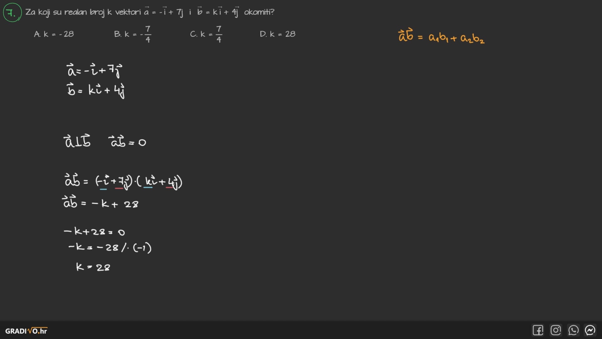 Skalarni umnožak okomitih vektora jednak je $0$.