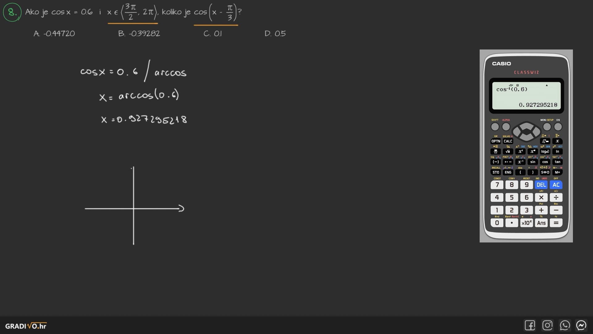 - 2. kvadrant: sinus $+$, kosinus $-$