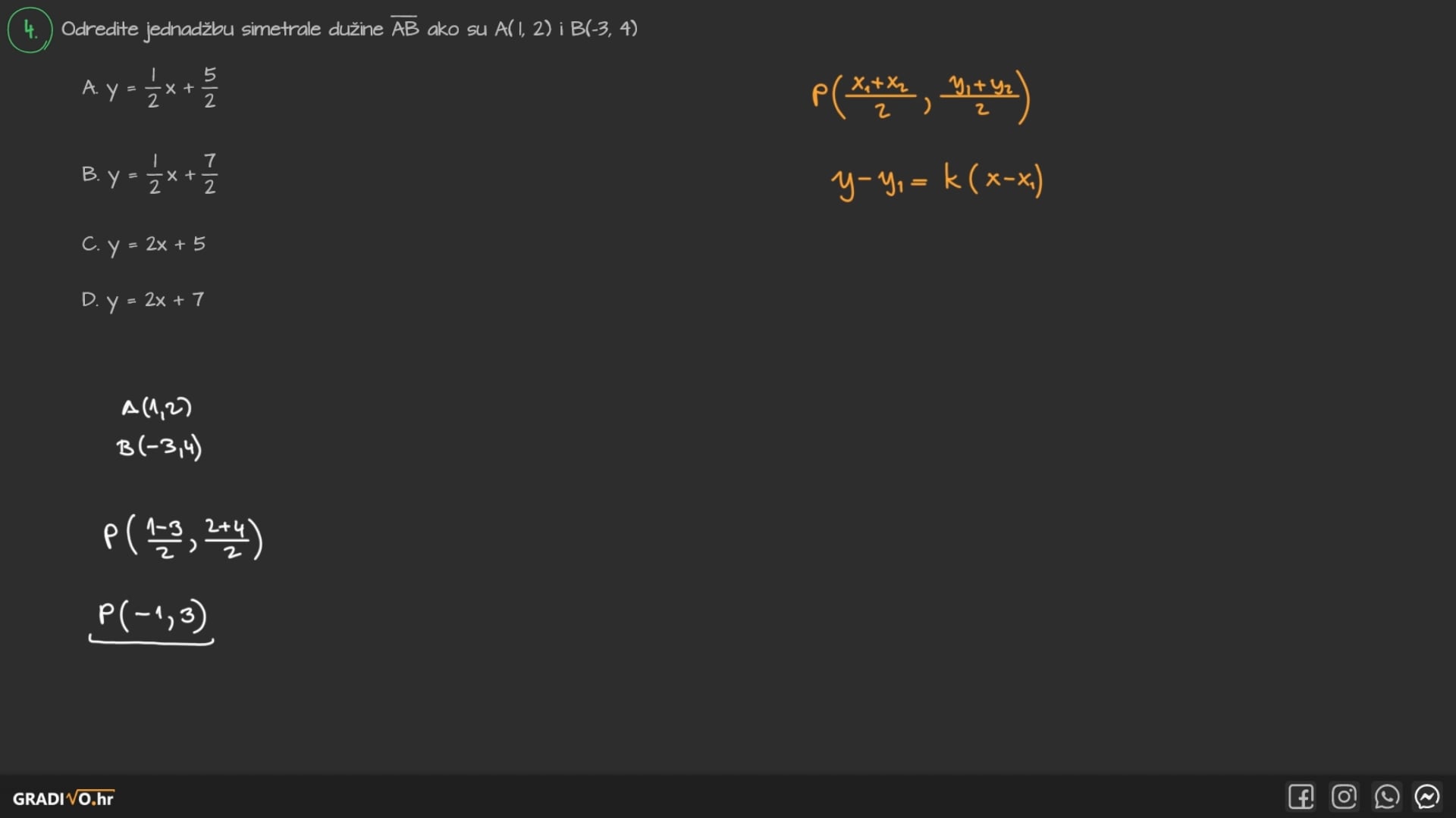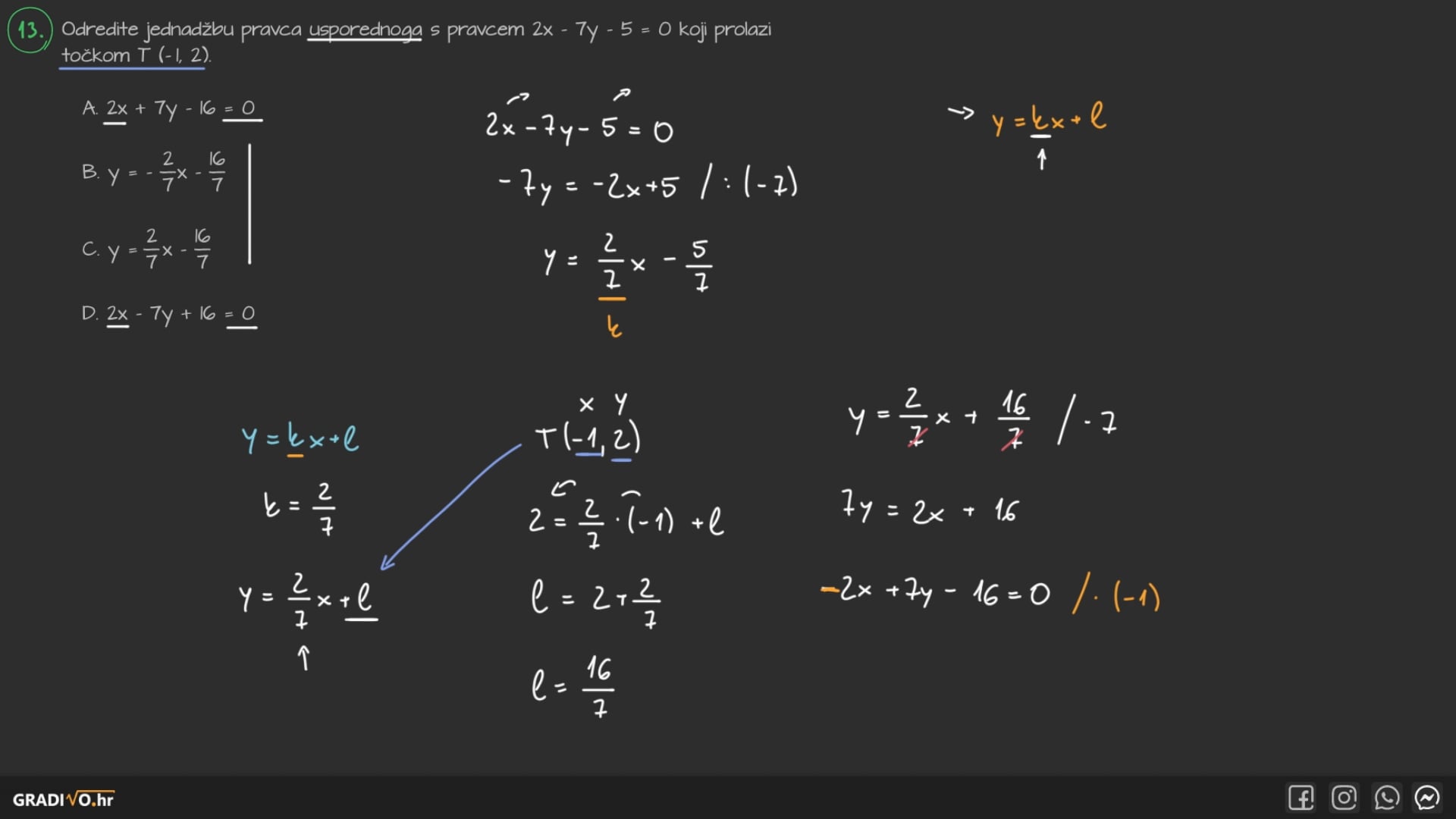 Ako je pravac zadan u obliku $y=kx+l$, formula glasi: