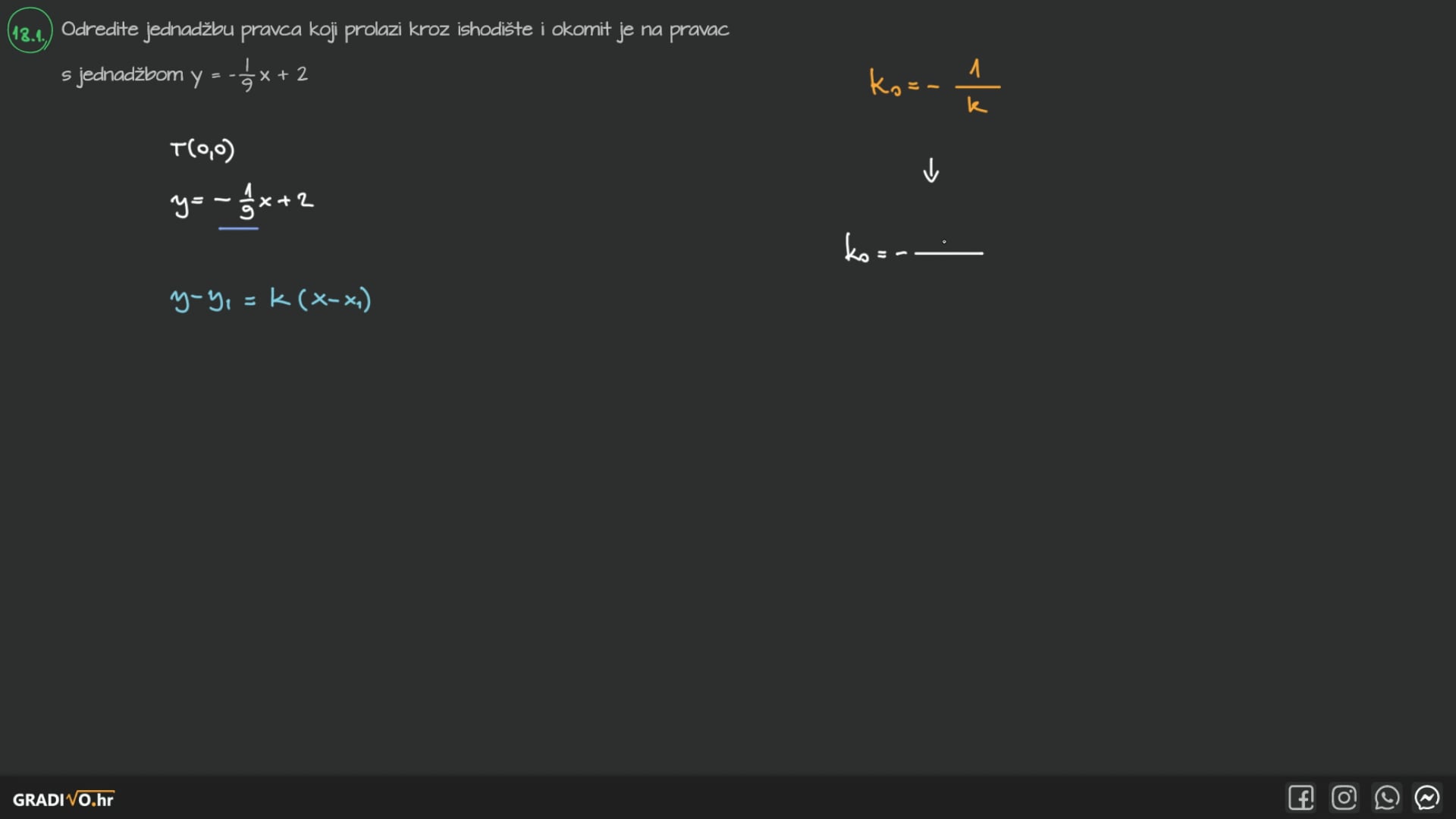Pravci su okomiti ako vrijedi sljedeće (imamo dvije formule, ovisno zapišemo li pravce u obliku $y=k_1 x + l_2$ i $y=k_2 x + l_2$ ili $A_1x+B_1y+C_1 = 0$ i $A_2x+B_2y+C_2=0$):