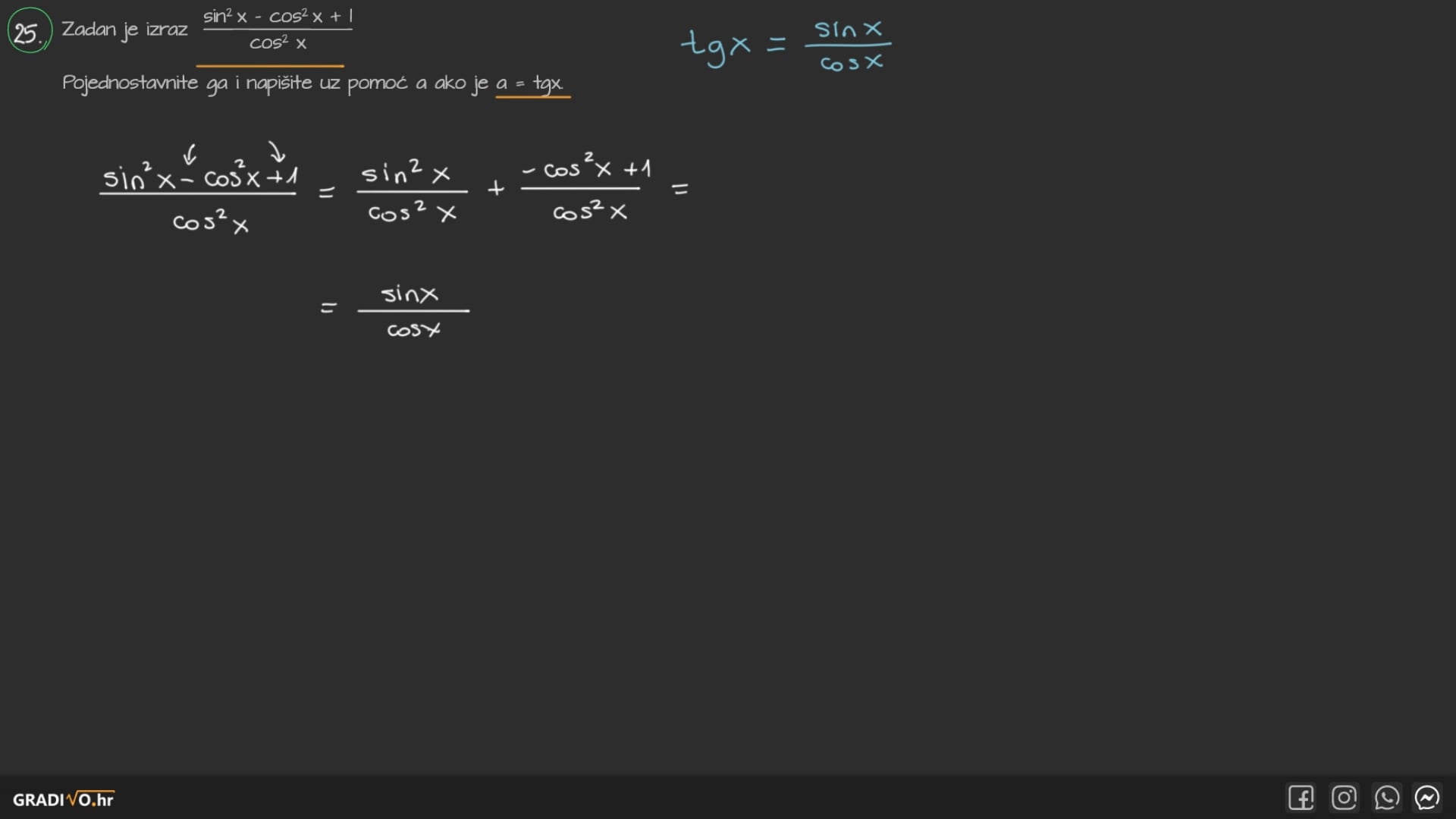Veza kosinusa i tangensa$ \cos ^{2} x=\frac{1}{1+\operatorname{tg}^{2} x} \quad \operatorname{tg}x = \pm \frac{\sqrt{1-\cos ^{2} x}}{\cos x} $