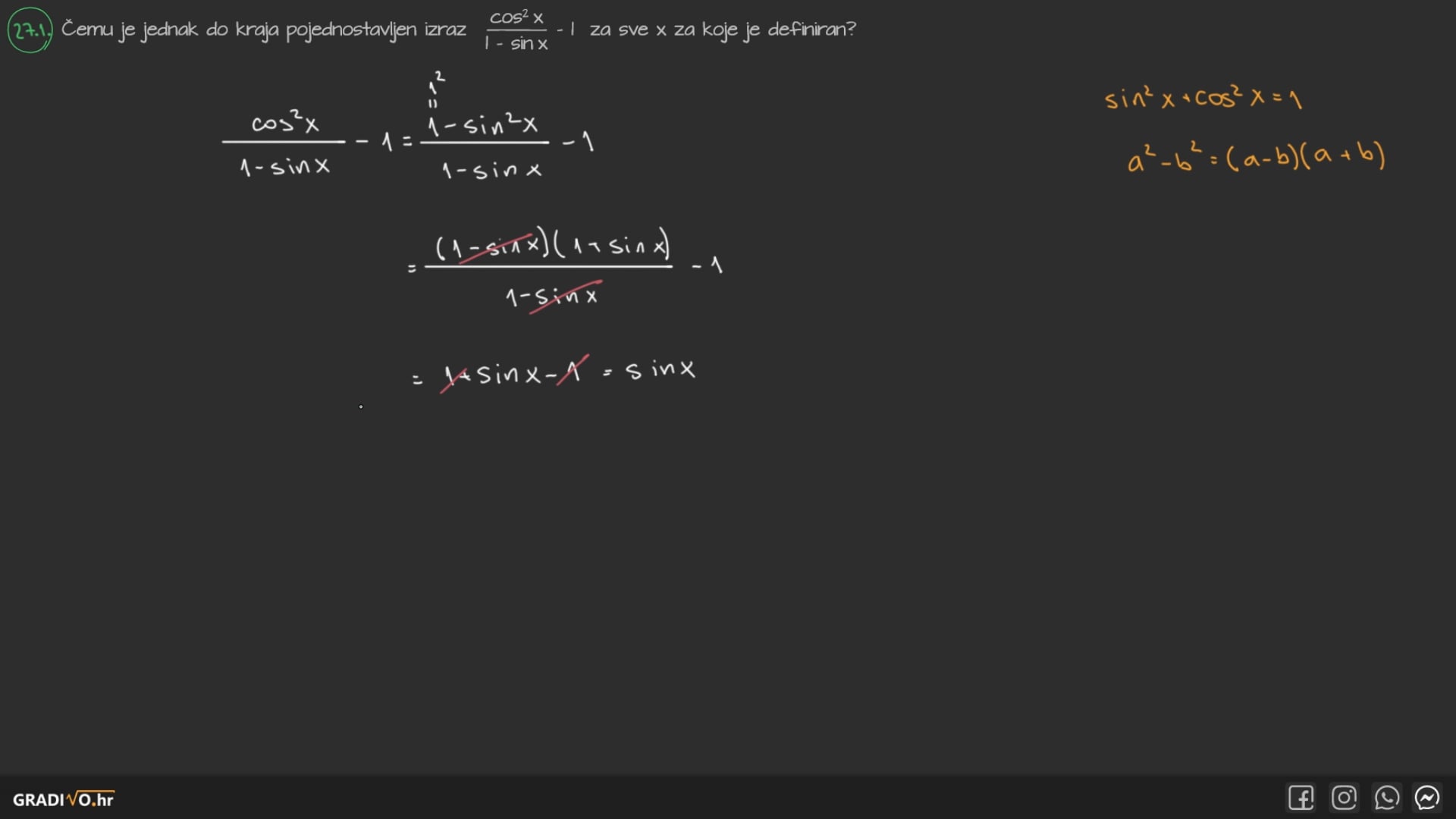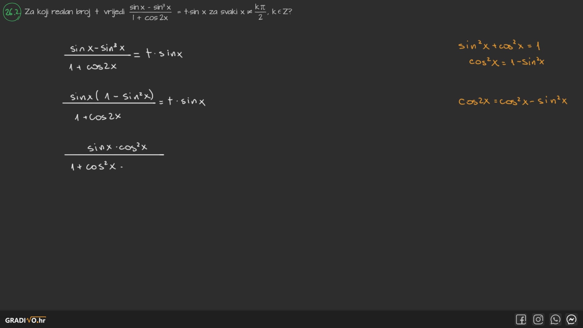 Kosinus dvostrukog kuta$ \cos 2 x=\cos ^{2} x-\sin ^{2} x $