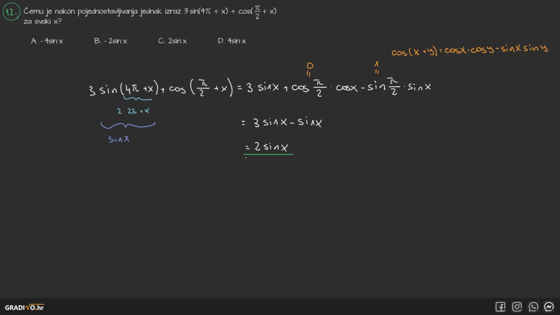 Sinus dvostrukog kuta$ \sin 2 x=2 \sin x \cos x $