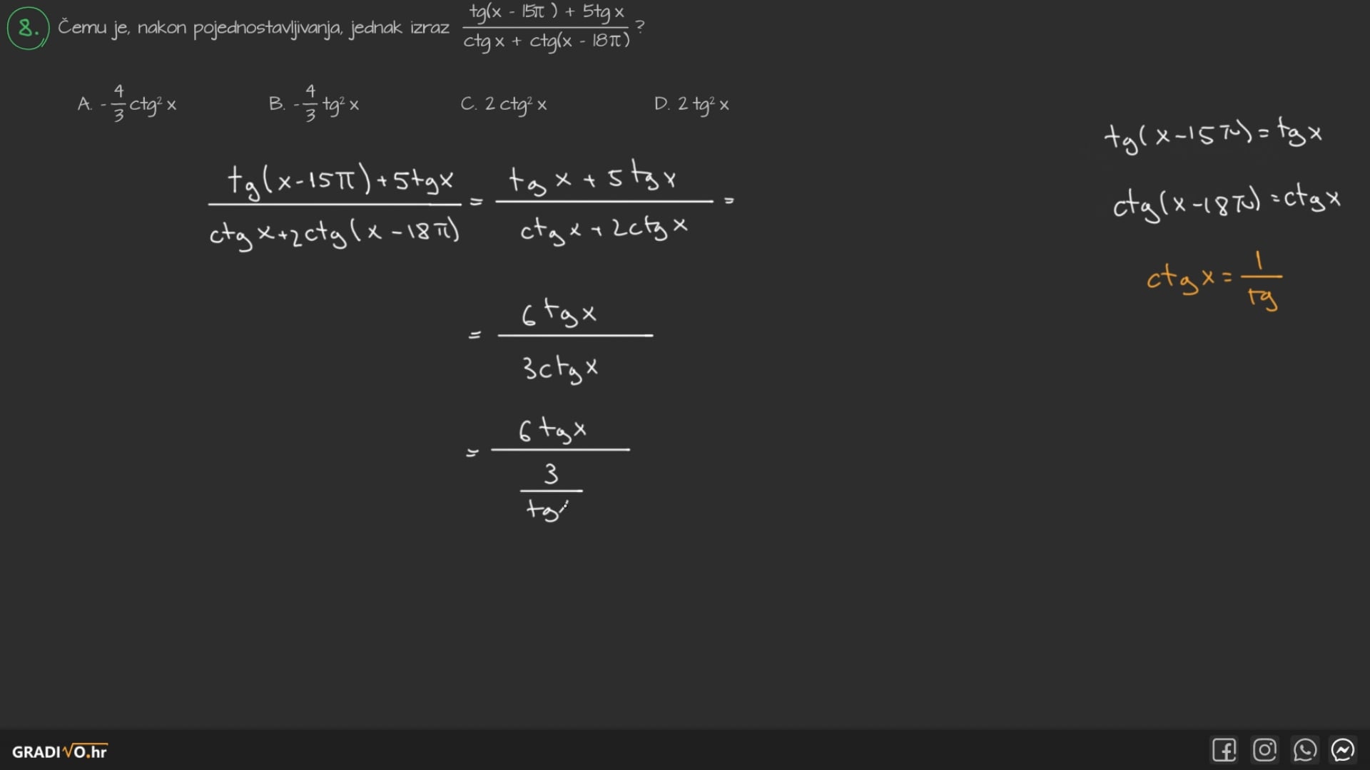 Tangens dvostrukog kuta$ \operatorname{tg} 2 x=\frac{2 \operatorname{tg} x}{1-\operatorname{tg}^{2} x} $