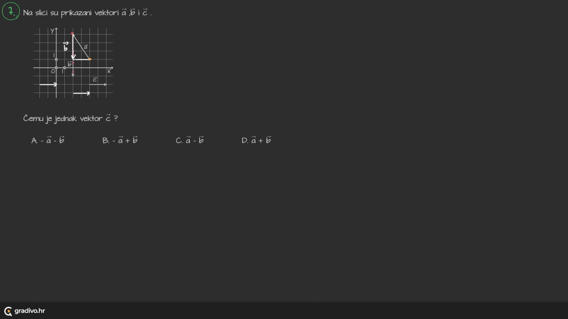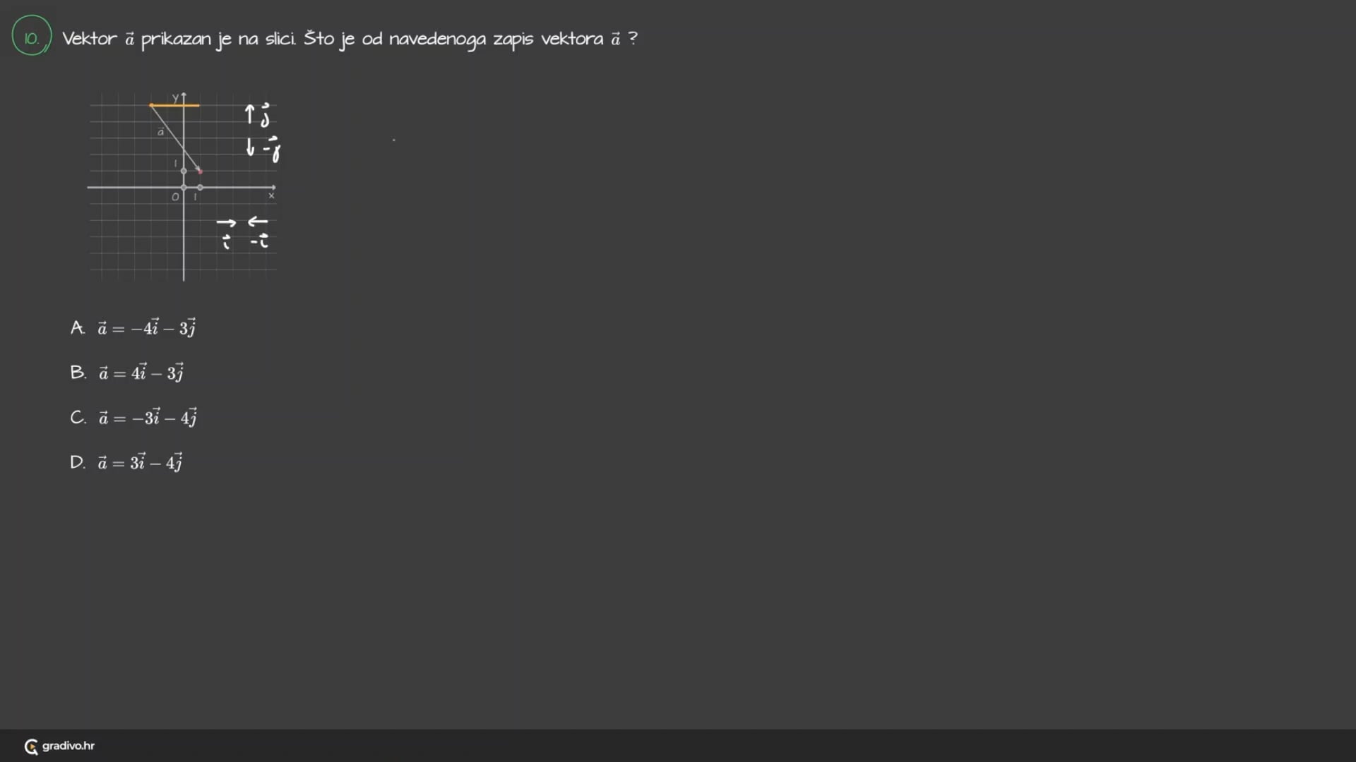 Suprotne vektore u koordinatnom sustavu prepoznajemo tako što imaju suprotne brojeve ispred $\vec{i}$ i $\vec{j}$.