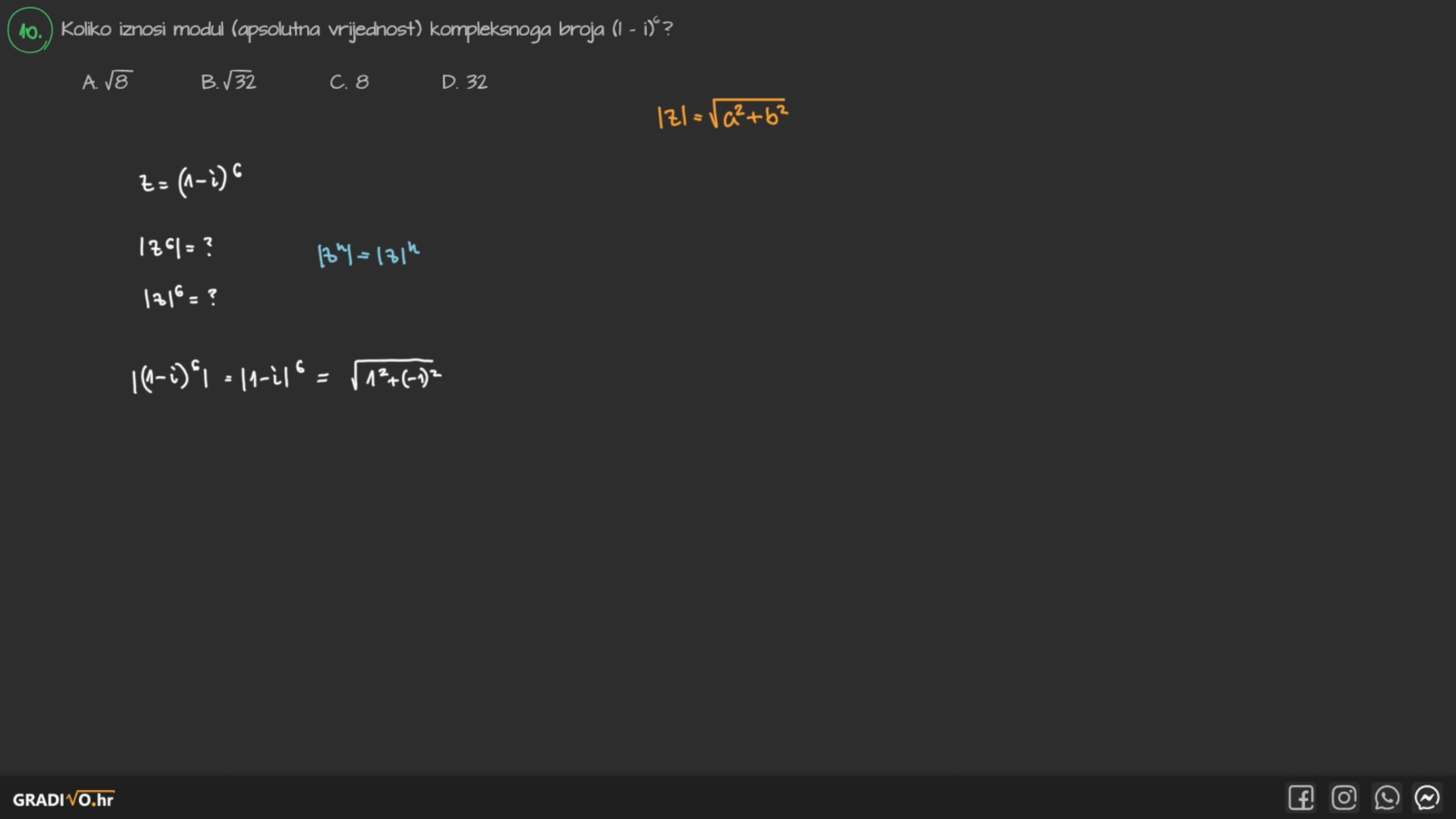 Modul kompleksnog broja $z = x+yi$, oznake $|z|$, je obični, realni broj koji računamo formulom: