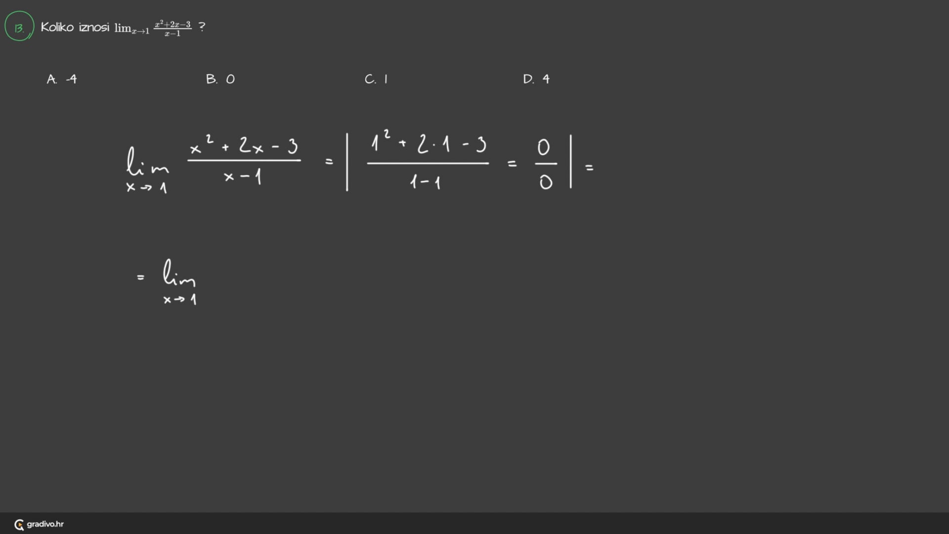 - limes slijeva $ \lim_{x \to 1^{-}} f(x) = 4$